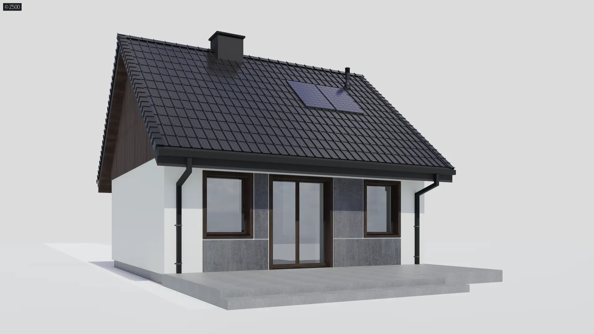 Projekt Z60 40 sd to wariant projektu Z60 ze zmienionym kątem nachylenia dachu na 40 stopni, zmienioną konstrukcją stropu oraz dachu oraz ze zlikwidowanym wydłużonym zadaszeniem nad tarasem. To niewielki i bardzo funkcjonalny dom parterowy. Doskonale sprawdzi się w roli wygodnego domku letniskowego. Prosta bryła oraz dwuspadowy dach czynią go tanim i szybkim w budowie.