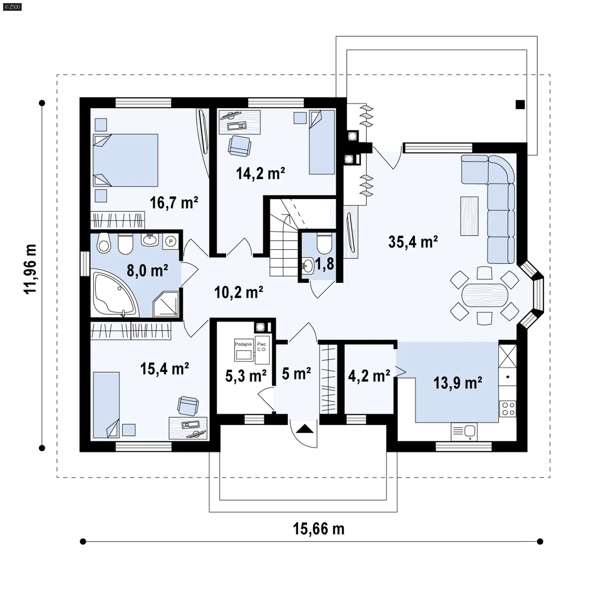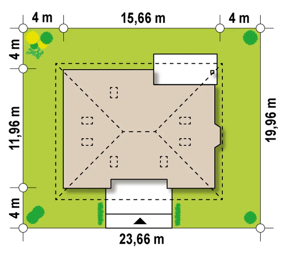 Funkcjonalny dom z opcją poddasza, trzema pokojami oraz dachem czterospadowym