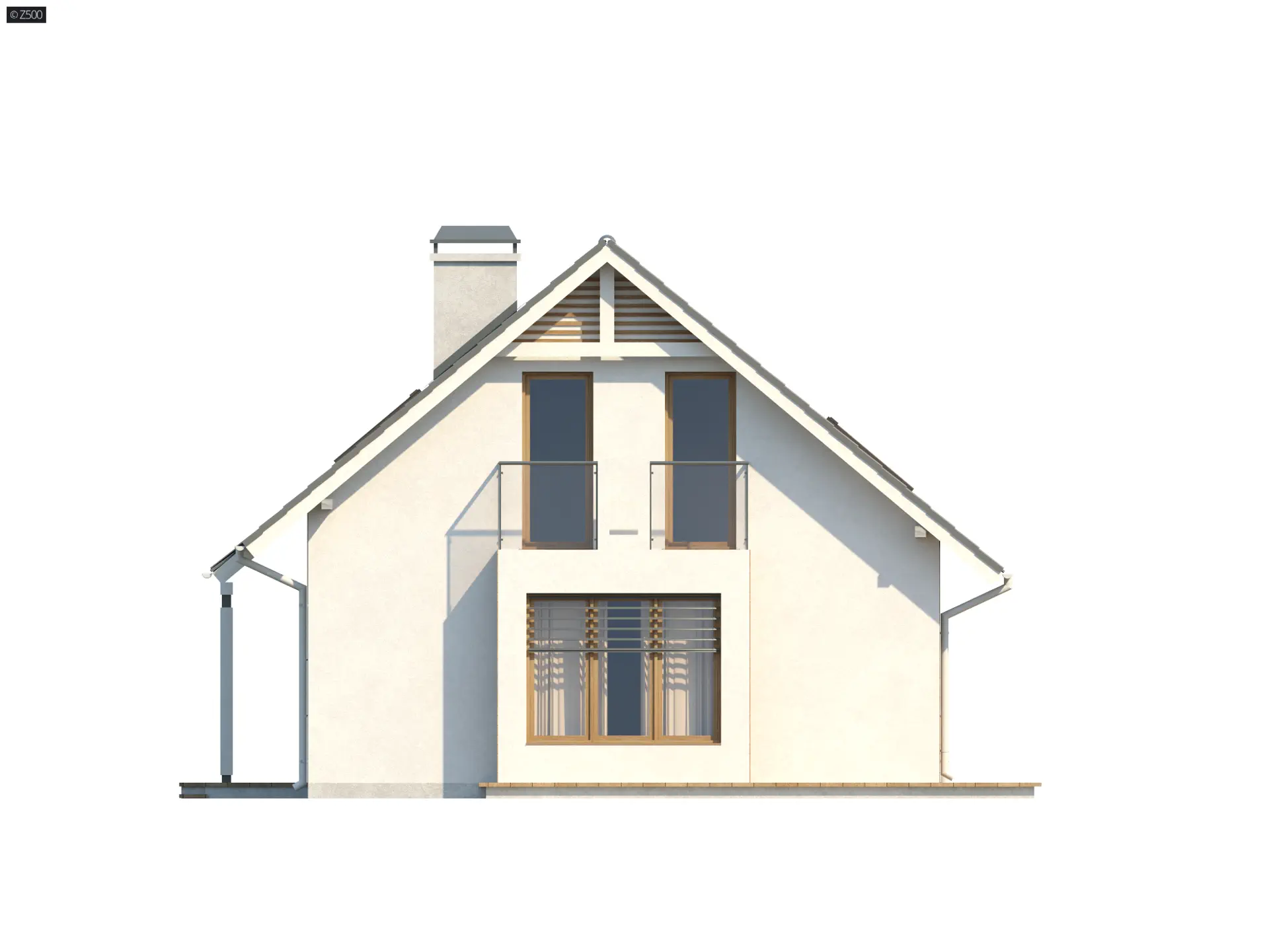 Nieduży dom z poddaszem, gabinetem na dole, wykuszem w jadalni i balkonem
