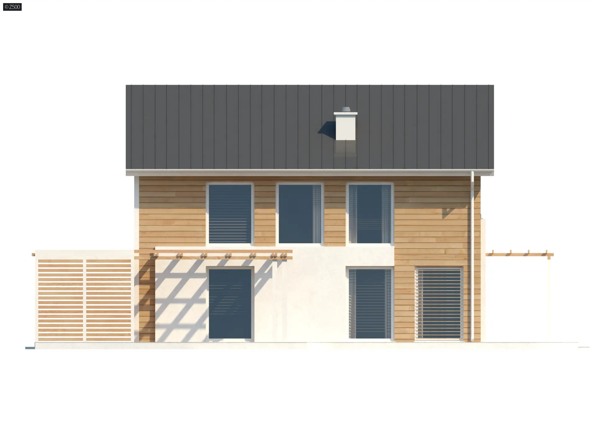 Z115 to dom niezwykle funkcjonalny i ergonomiczny. Prosta, zwarta bryła z dachem dwuspadowym czynią go rozsądną i ekologiczną inwestycją. Świeże, naturalne kolory elewacji oraz okładziny z drewna nadają mu przyjemnego, atrakcyjnego wyglądu.