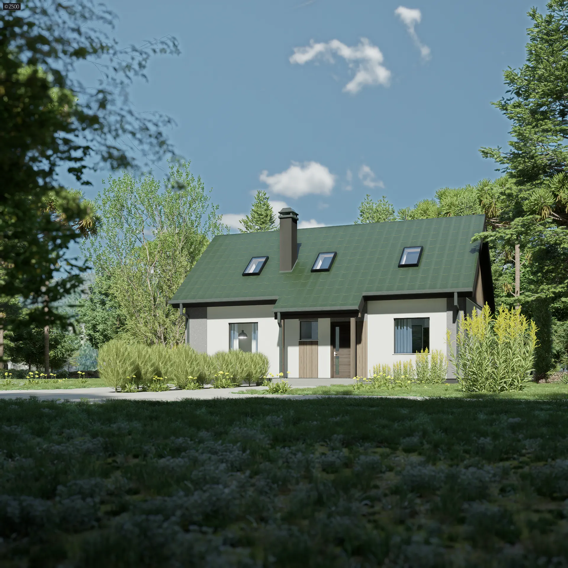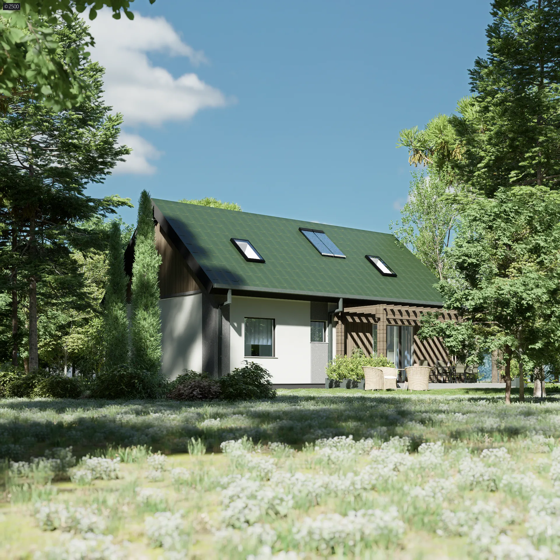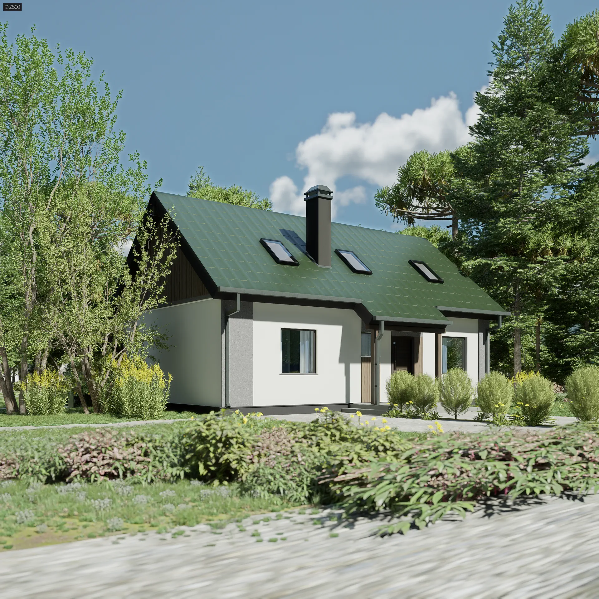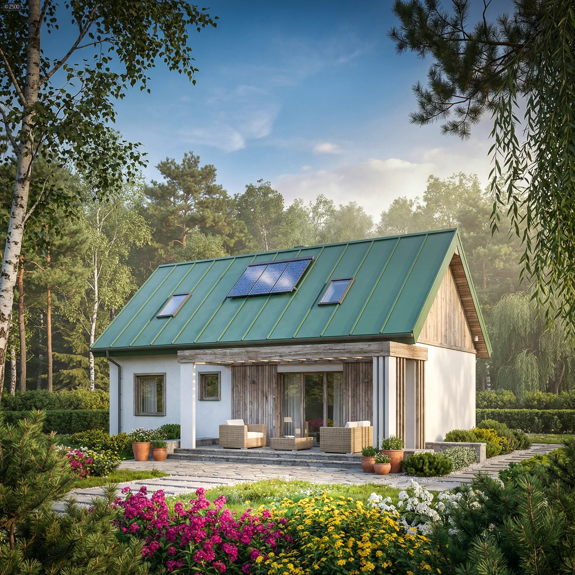 Drewniany dom z dachem dwuspadowym, antresolą, łatwy i ekonomiczny w budowie