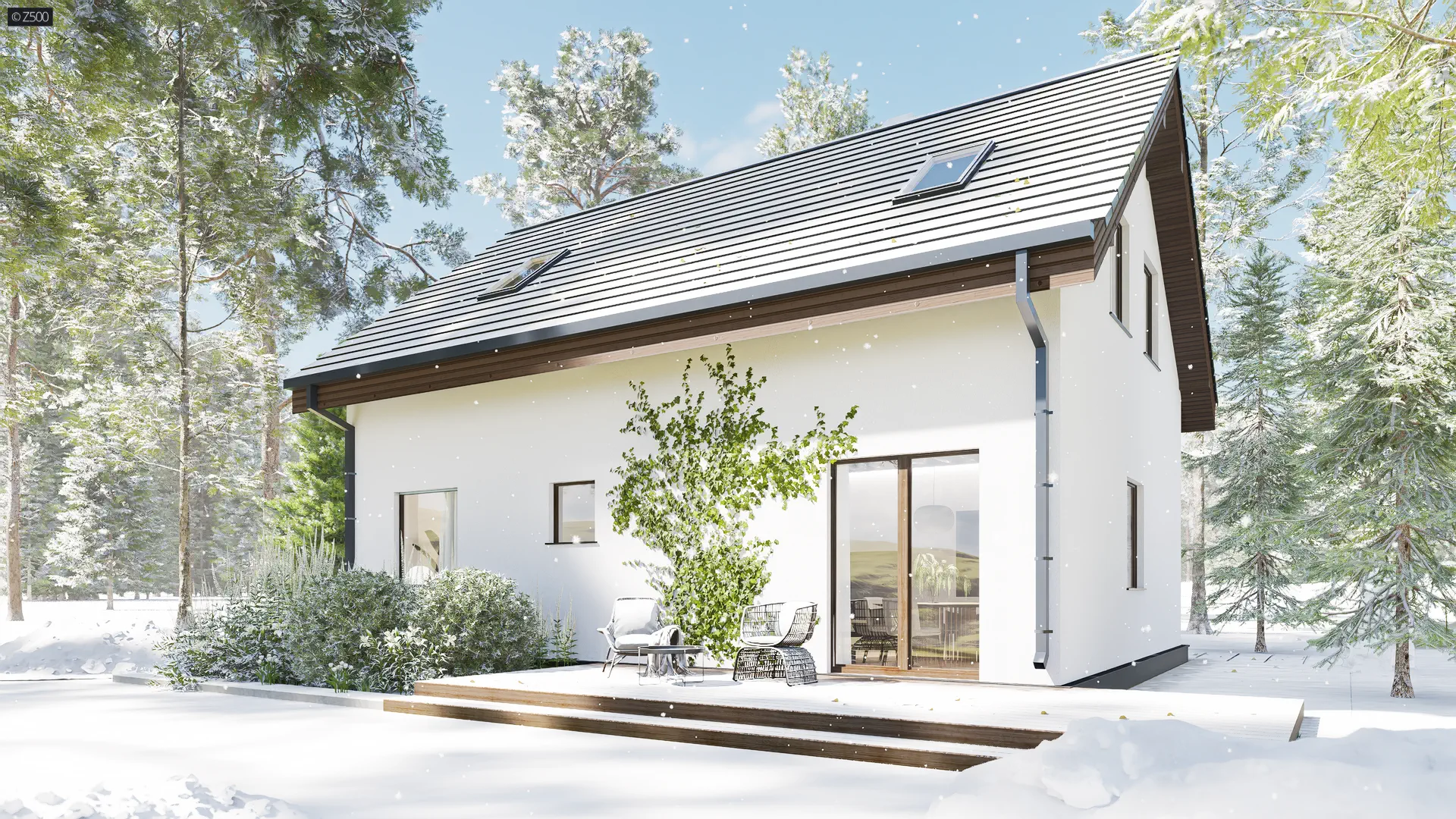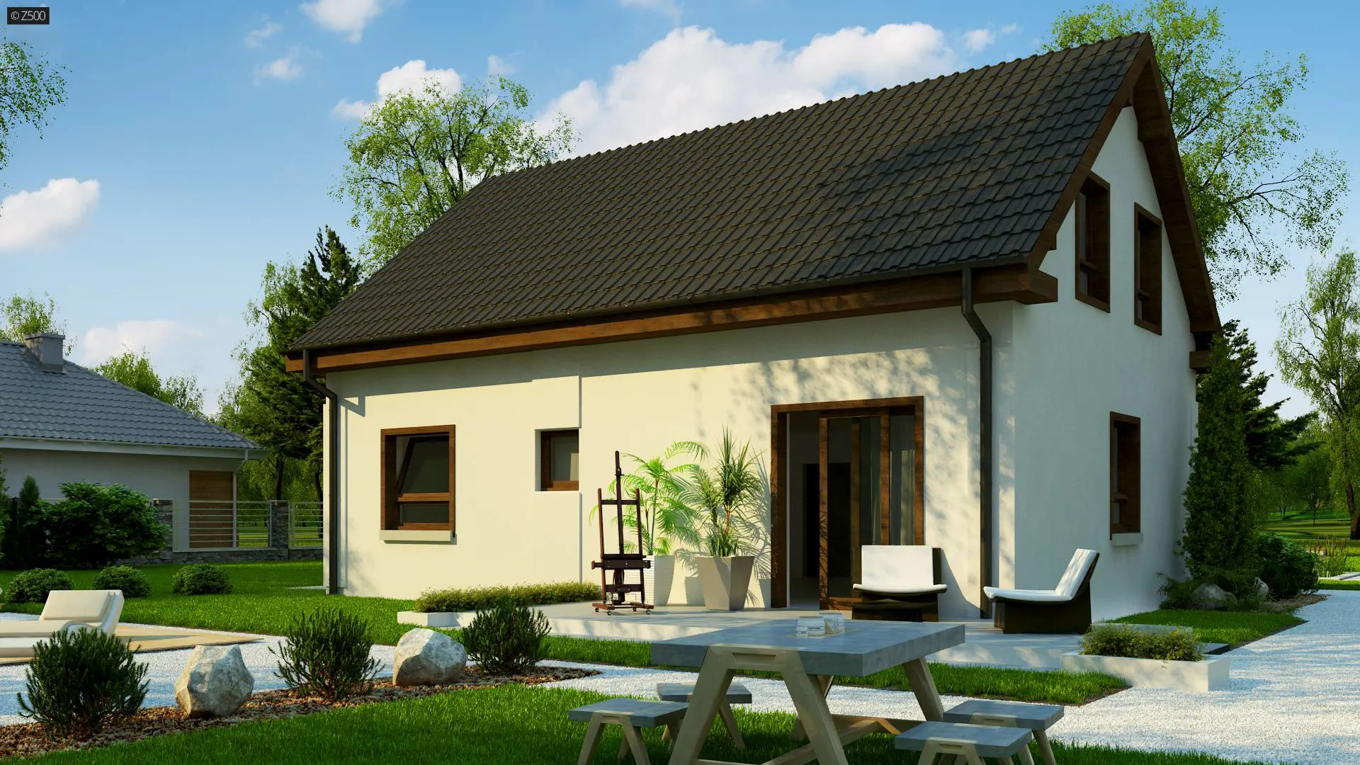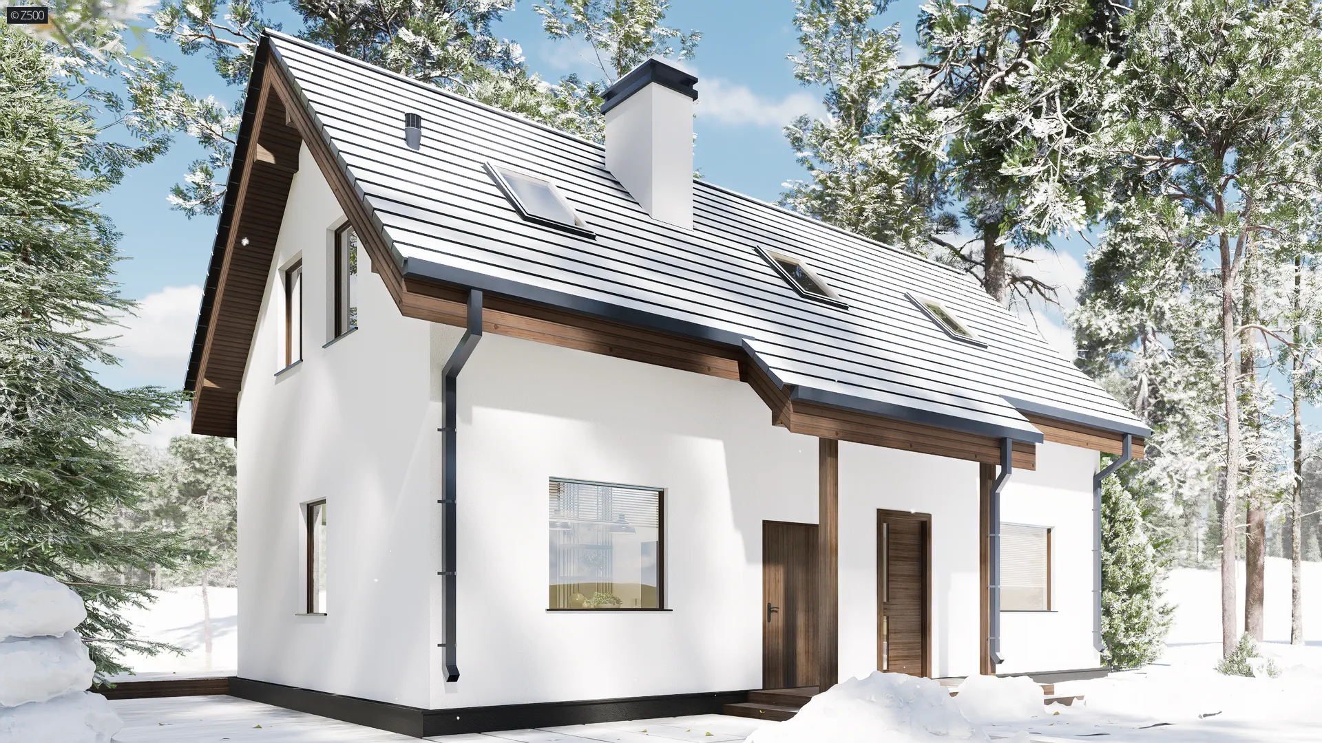 Z12 P h+ to dom parterowy z Poddaszem użytkowym. Prosta bryła oraz możliwością etapowania inwestycji czynią go tanią i ekonomiczną inwestycją.