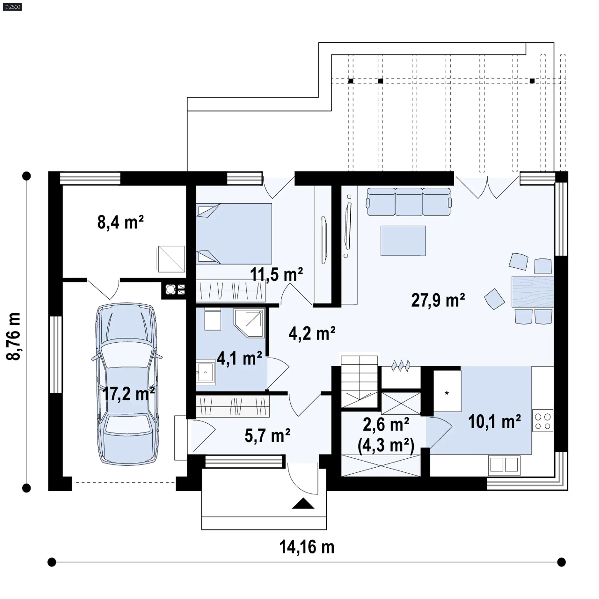 Z122 v2 to wyjątkowy projekt. Nowoczesną bryłę podkreśla oryginalna lukarna. Starannie dobrane dodatki oraz drewniane elementy elewacji dodają mu panoramicznego wyglądu. Jego przyjemna, atrakcyjna forma sprawia, że dom wciąż zyskuje nowych wielbicieli.