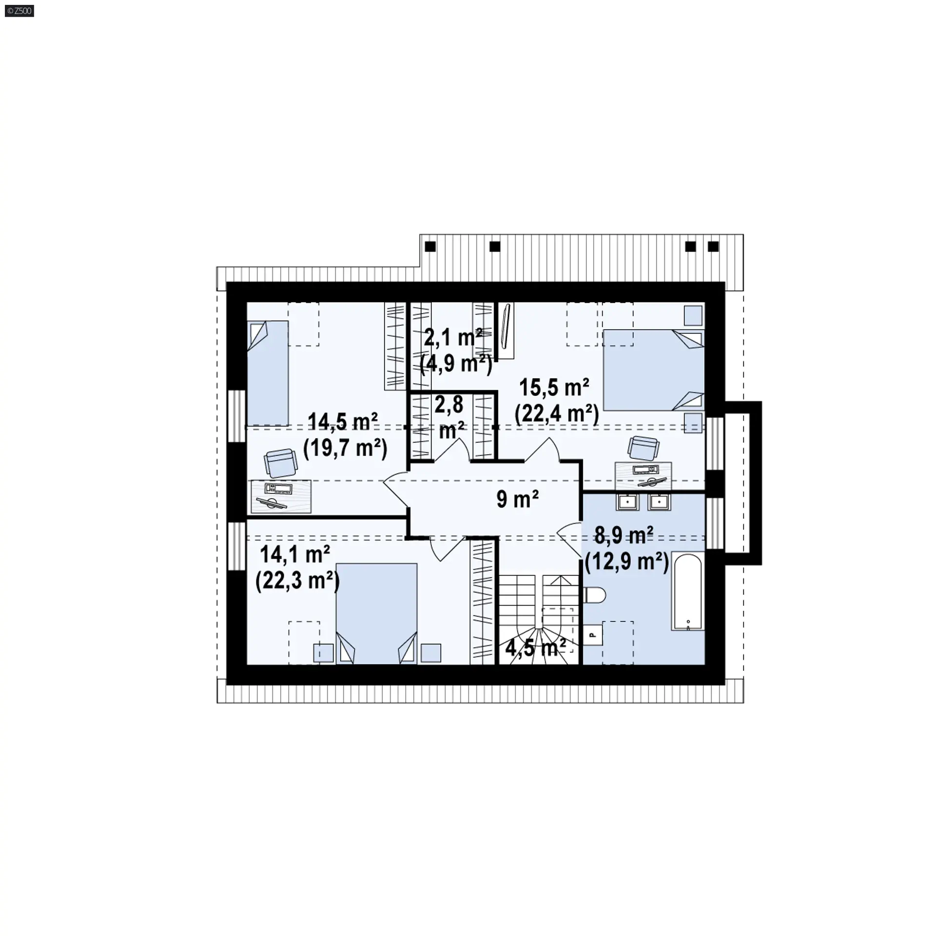 Projekt Z124 odznacza się wyjątkowo komfortowym układem pomieszczeń. Główną częścią jest przestronny, jasny salon. Wykusz urozmaica wnętrze i wydziela z przestrzeni aneks jadalny. Kuchnia zaprojektowana w kompozycji otwartej doskonale powiększa całe pomieszczenie. W centralnym miejscu strefy dziennej zaplanowano kominek, który nadaje wnętrzu przytulnego i ciepłego charakteru. Na poddaszu znajdują się trzy przestronne sypialnie, garderoba oraz komfortowa łazienka z miejscem na dużą wannę. Główna sypialnia posiada własną garderobę.