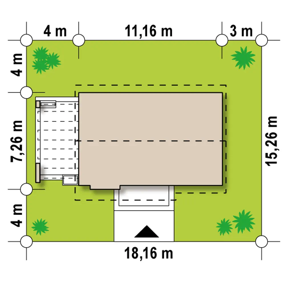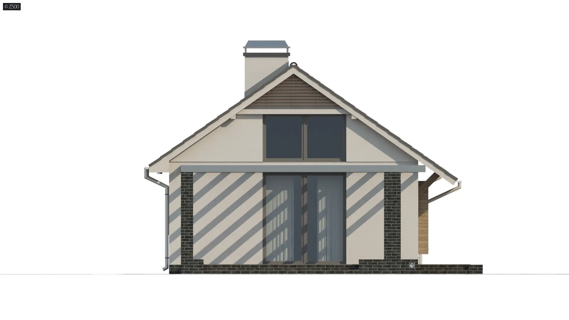 Z139 v2 to propozycja domu parterowego z dachem dwuspadowym. Tworzy go prosta, foremna bryła z ozdobnym wykuszem, a efektowne wykończenie elewacji, poprzez wkomponowanie drewnianych elementów powoduje, że dom nabrał ciekawego i niepowtarzalnego wyglądu.