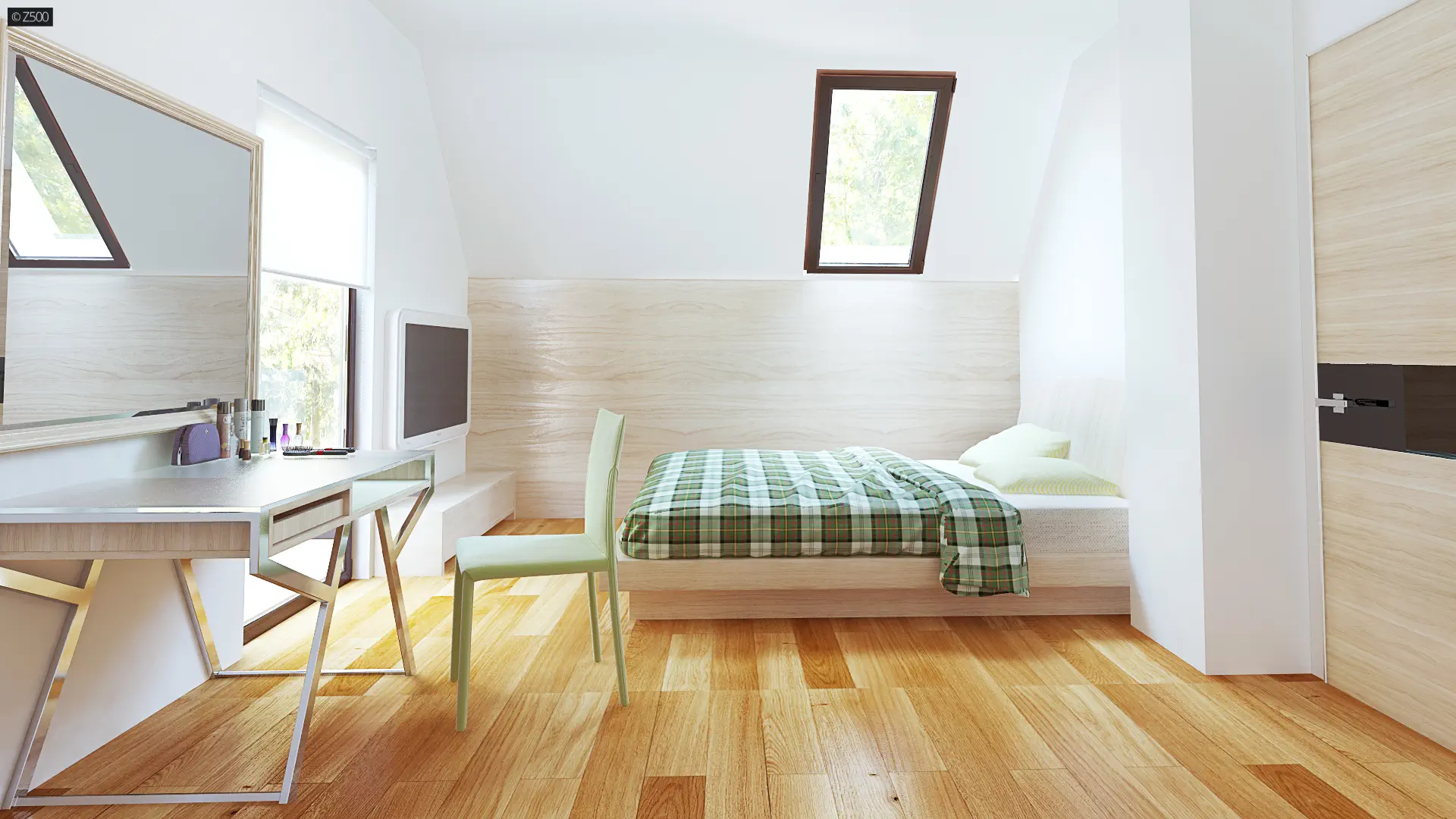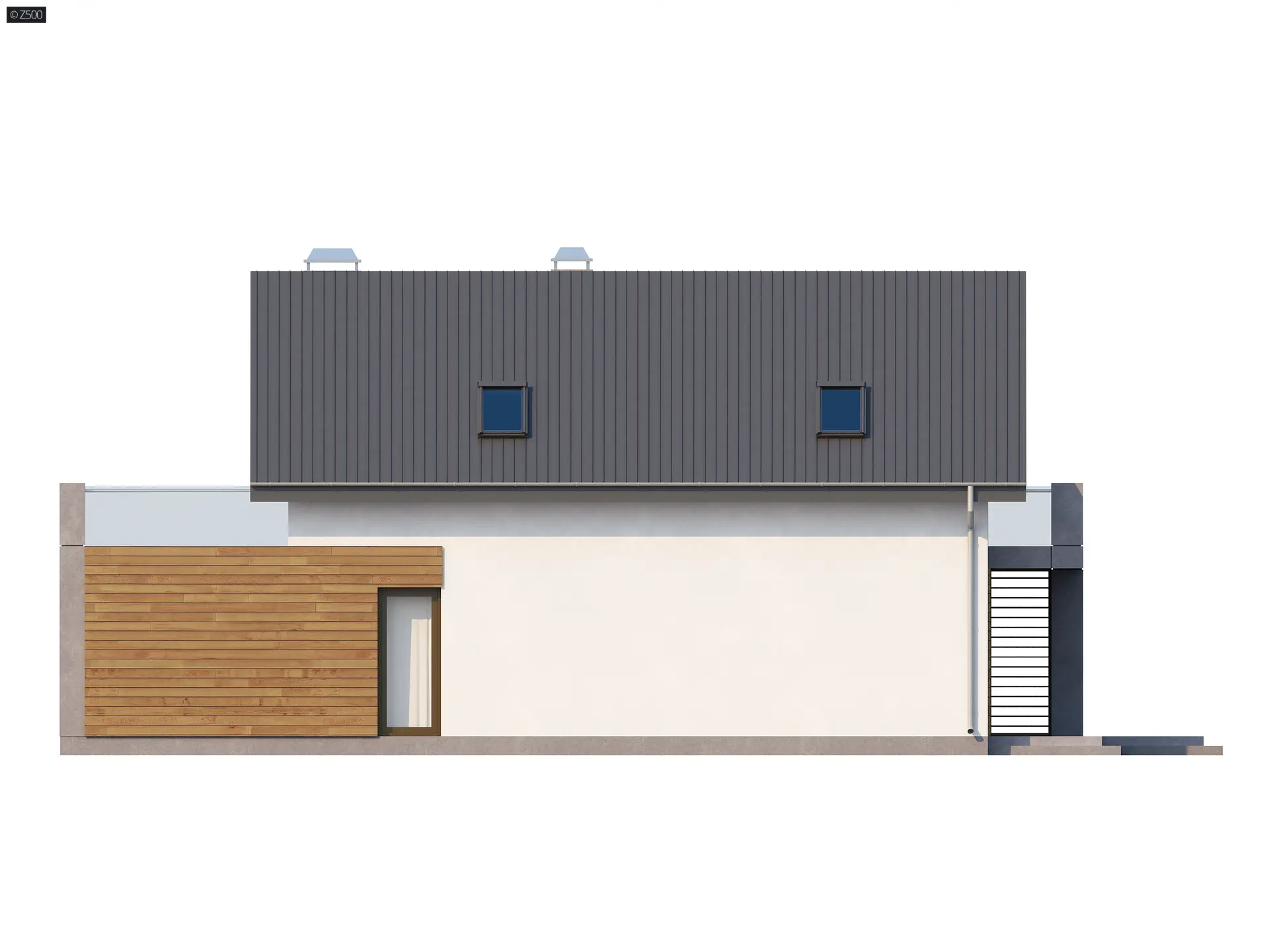 Z149 to projekt o klasycznej naturze i pionierskim charakterze. Prosta konstrukcja bryły budynku oraz dwuspadowy dach to łatwy przepis na tani i funkcjonalny dom. Spójną, harmonijną całość tworzą jasne barwy ścian i popielate dodatki, subtelnie połączone z drewnianymi elementami elewacji