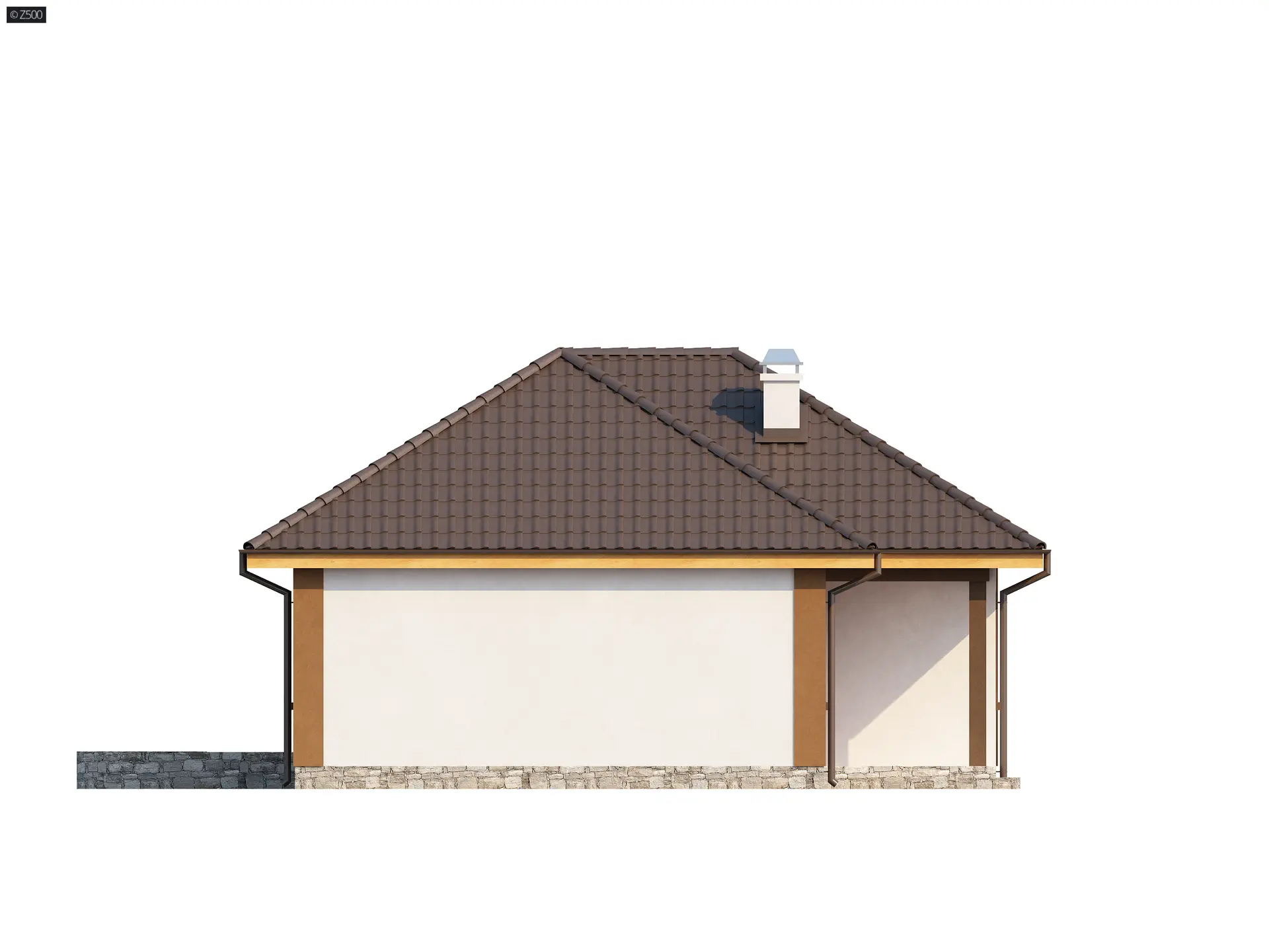 Mały parterowy dom z trzema pokojami, dachem wielospadowym i kuchnią od frontu