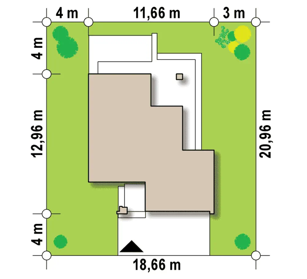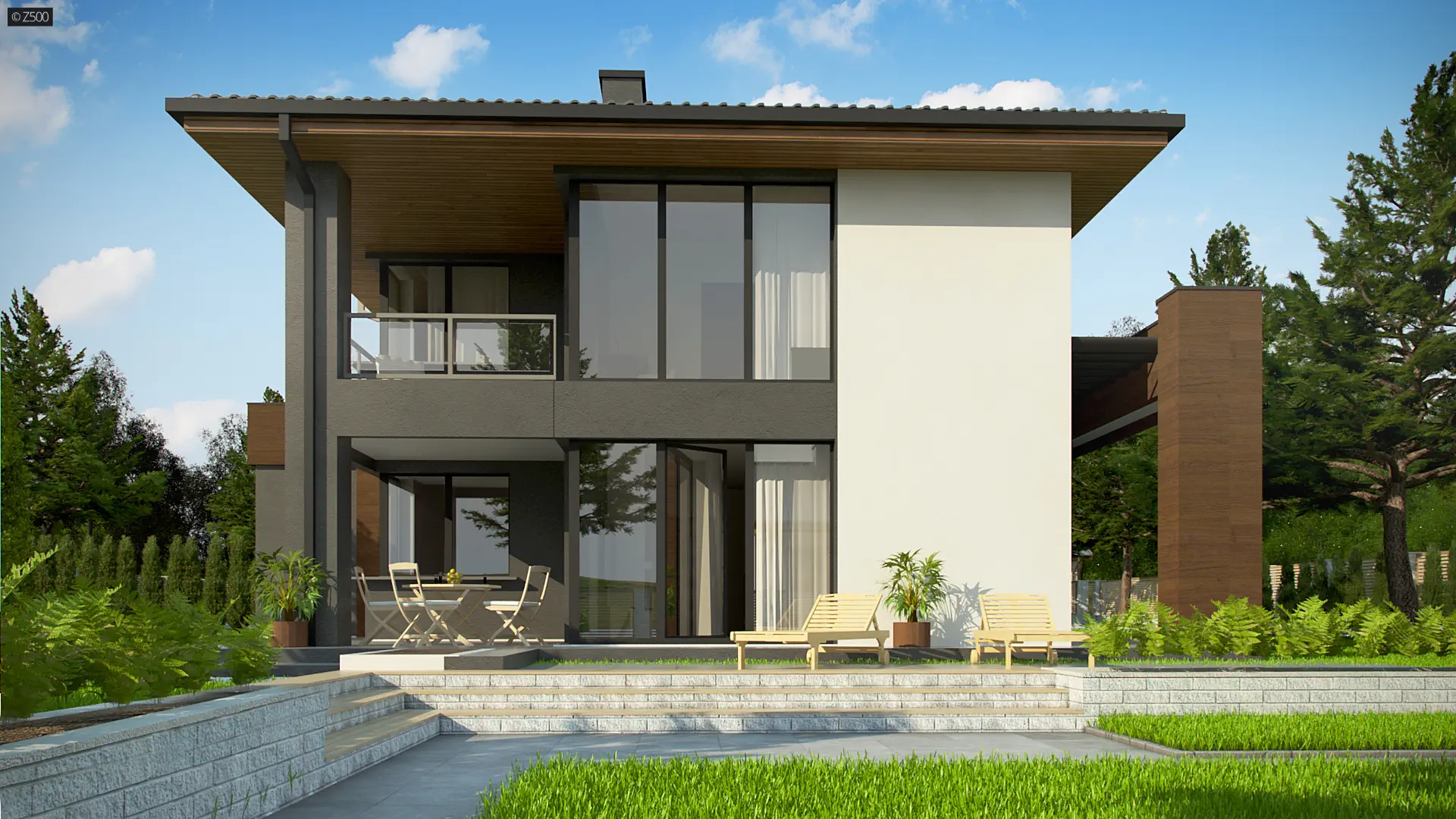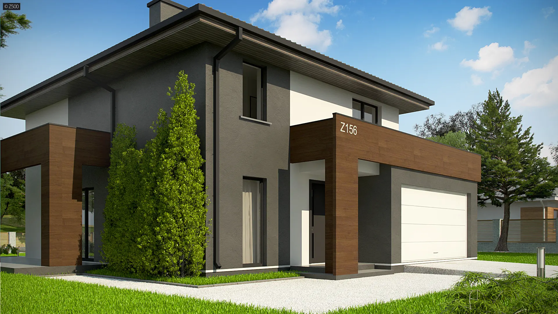 Pomniejszona wersja Z156 A z pełnym piętrem oraz garażem dwustanowiskowym.