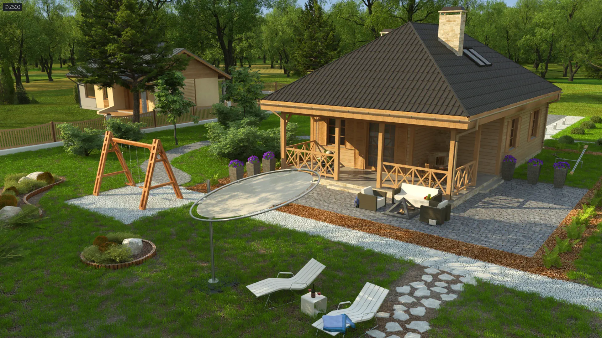 Wersja podstawowa domku Z16 w technologii murowanej z poddaszem użytkowym (kąt nachylenia dachu 35').