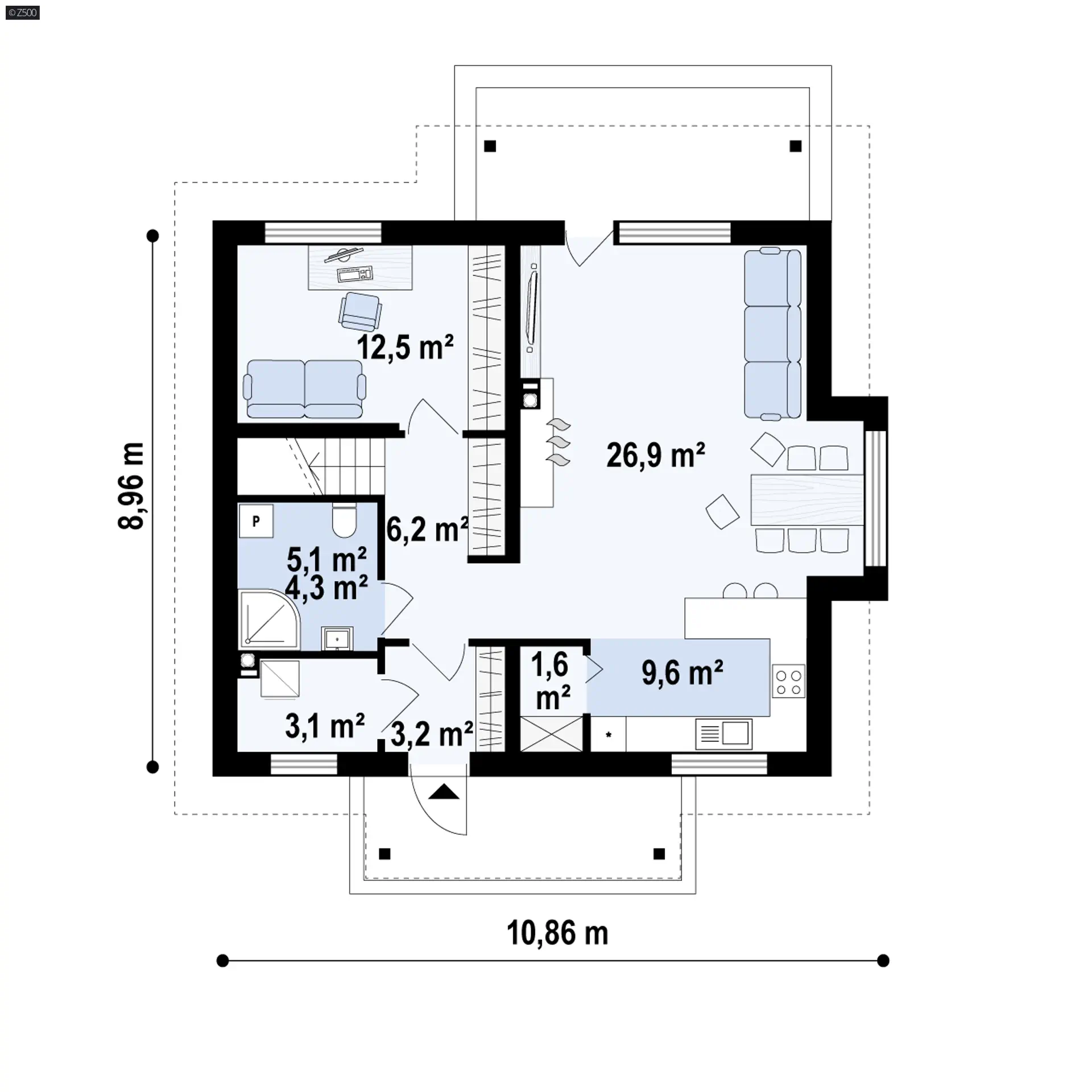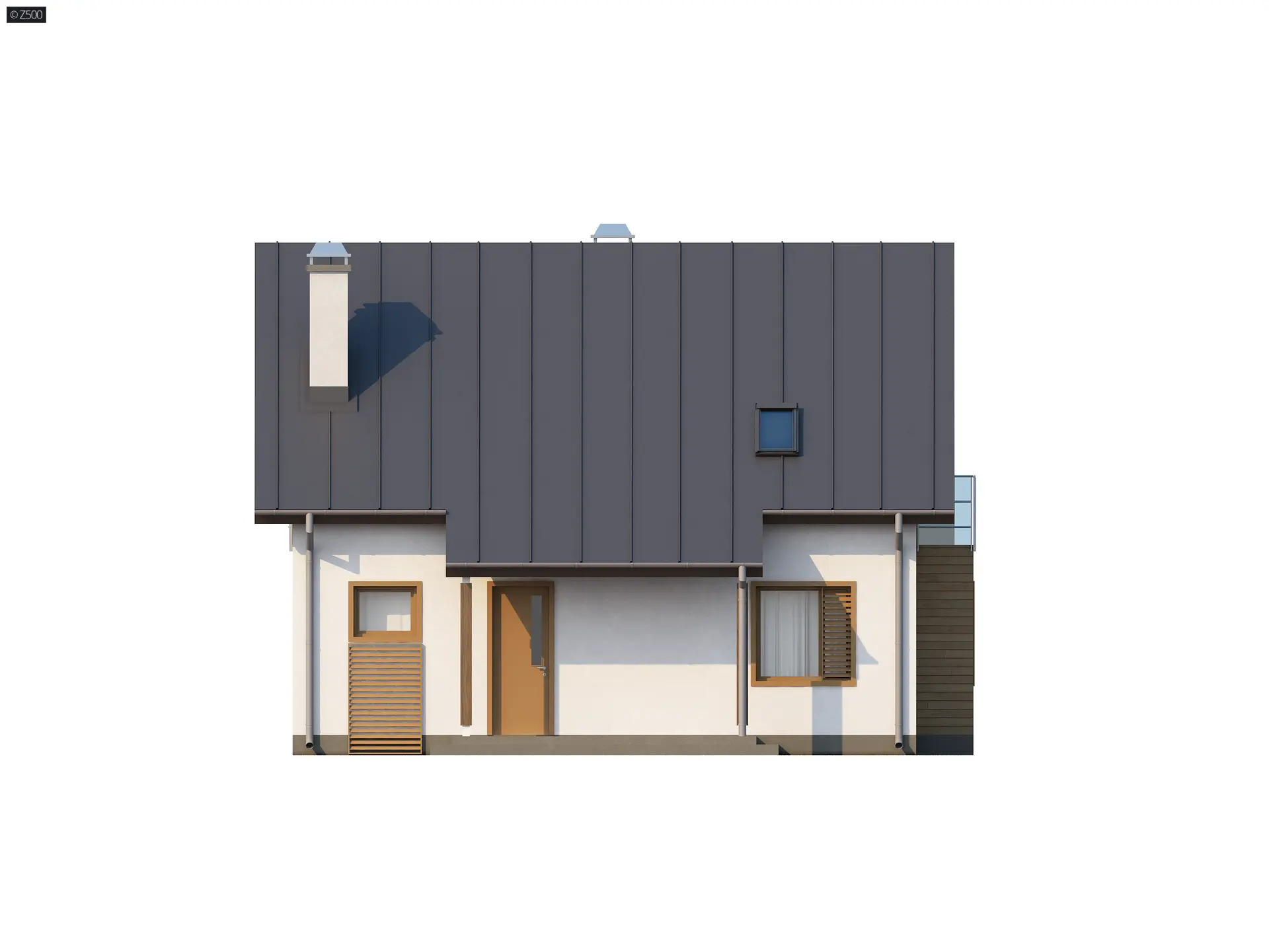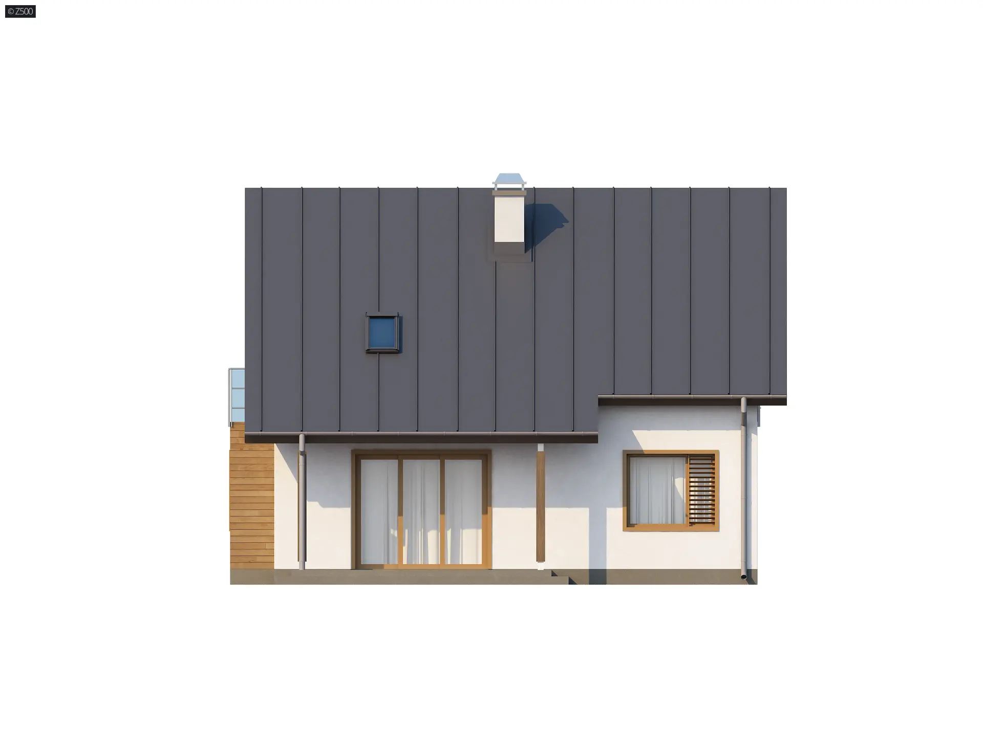 Z162 to wyjątkowy dom, także na niewielką działkę. Prosta konstrukcja, dwuspadowy dach czynią go tanią i łatwą w realizacji inwestycją. Ozdobą domu jest zgrabny wykusz. Popielata blachodachówka oraz drewniane elementy elewacji trafnie podkreślają nowoczesny styl domu.