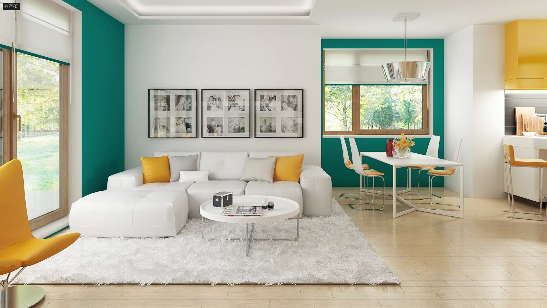Wyjątkową zaletą projektu jest przestronny salon. Centralnie zlokalizowany kominek będzie atrakcją zimowych wieczorów. Strefa jadalni subtelnie wtapia się w wykusz domu. Kuchnia zaprojektowana w kompozycji otwartej jest jasna i wygodna. Niewielki blat lub stół barowy oddziel ją od salonu. Podręczna spiżarnia to doskonałe miejsce na większe zakupy lub domowe przetwory. Pokój na parterze może pełnić rolę gabinetu lub pokoju gościnnego. Łazienka posiada wydzieloną strefę pralni.