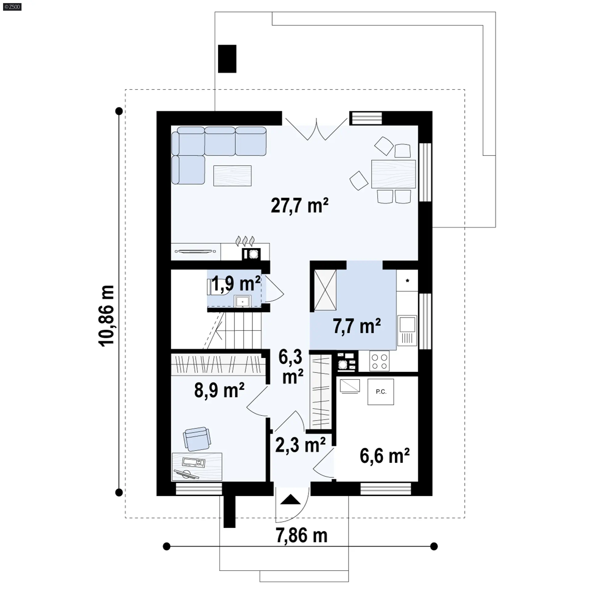 Wygodny dom z poddaszem, gabinetem na parterze i 4 sypialniami na wąską działkę