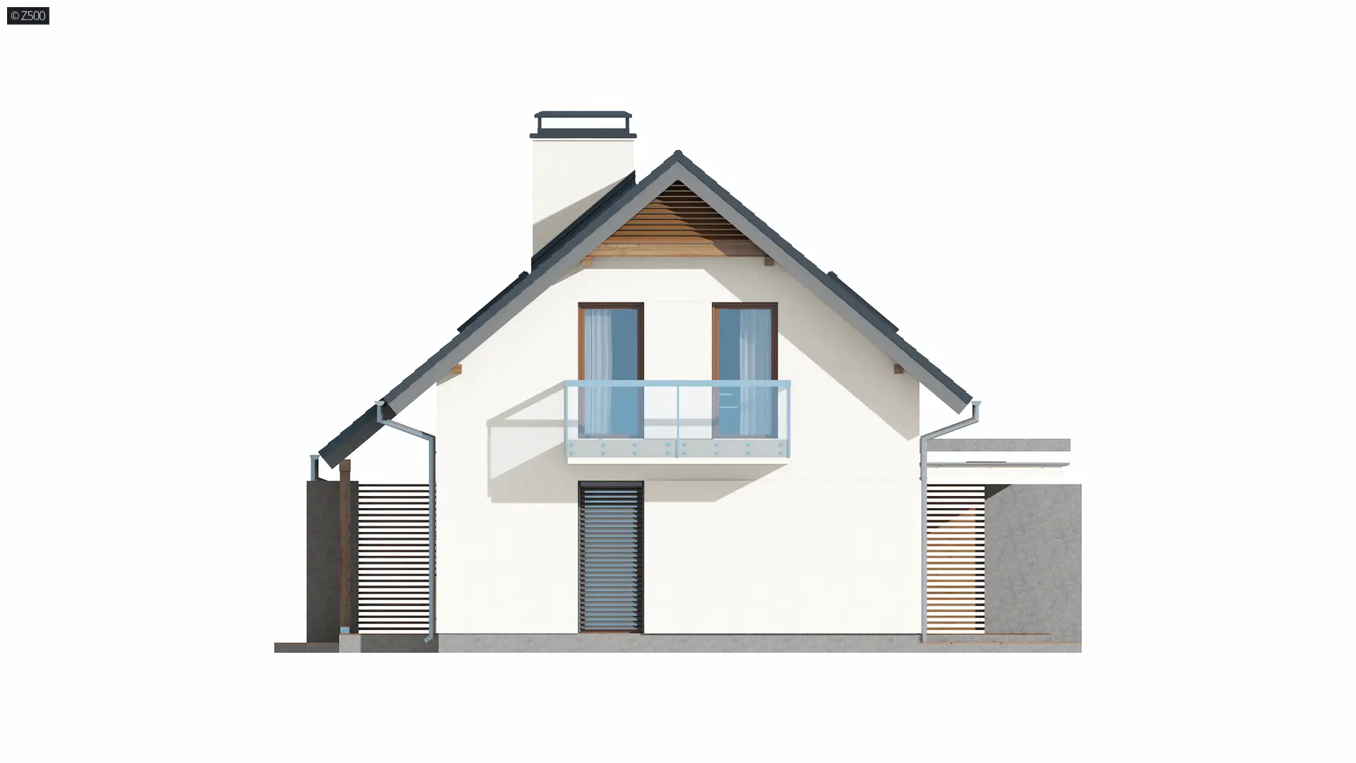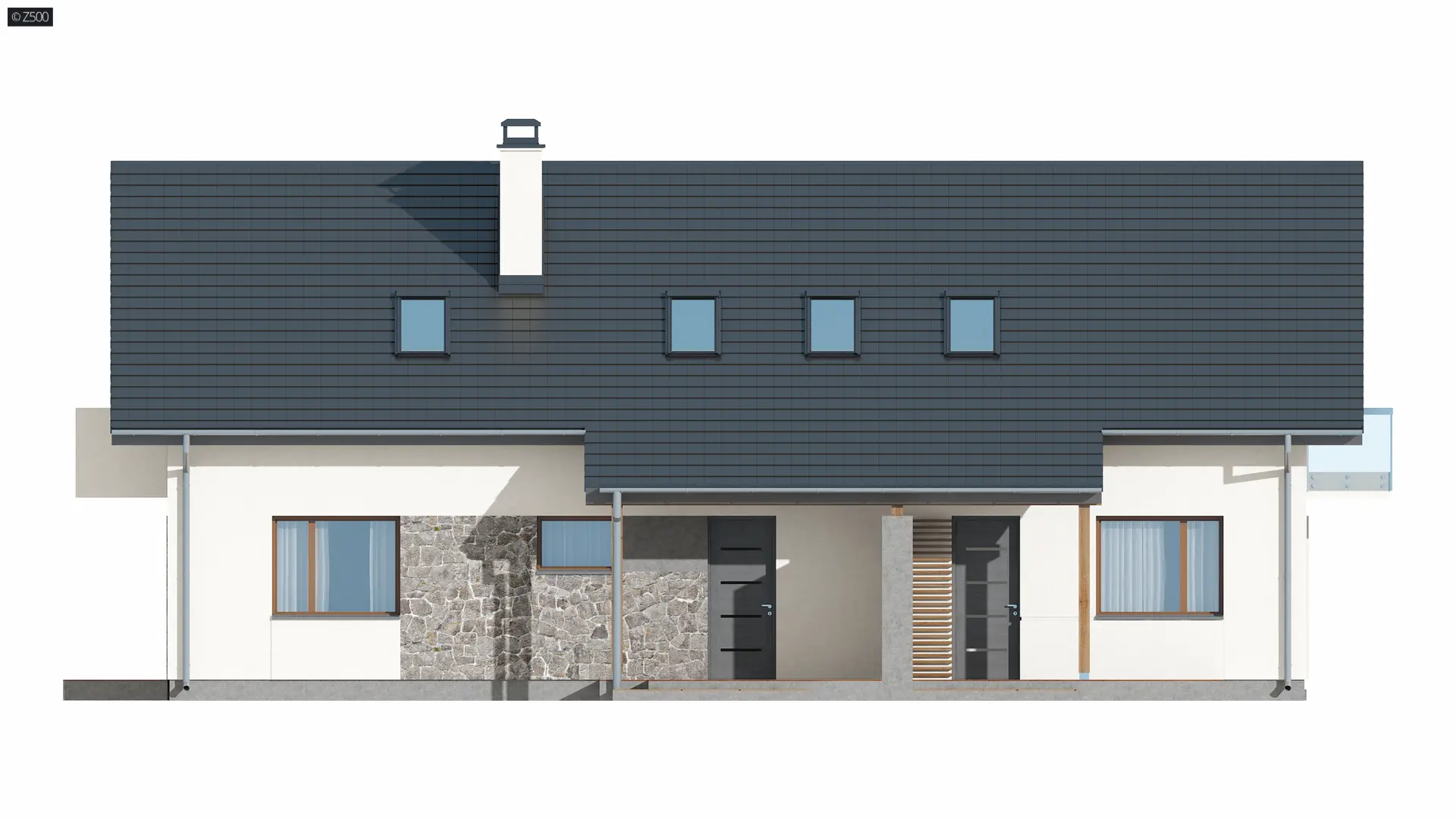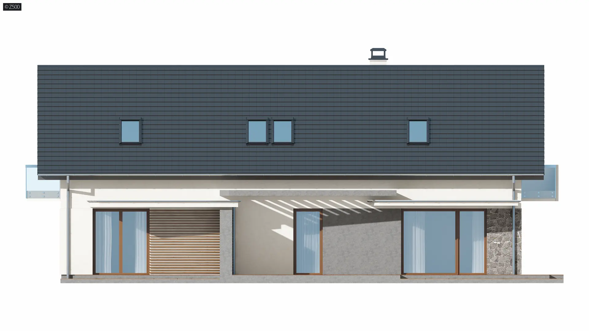 Z184 to dwie części: główna z dużą strefą dzienną, dodatkowym pokojem na parterze, trzema sypialniami na piętrze, oraz mniejsza, idealna także pod wynajem. W obu częściach strefy dziennej znajduje się wygodna funkcjonalna kuchnia, miejsce na stół, salon z kominkiem. W mniejszej zaprojektowano pieco-kominek na ekologiczne, tanie pellety. Nie jest to dodatek konieczny, duże pomieszczenie gospodarcze obsługuje cały budynek, ogrzewa wszystkie pomieszczenia. Na poddaszu mieszczą się trzy pokoje, największa sypialnia posiada własną garderobę. W mniejszej części wydzielono dwa pokoje z balkonem i łazienkę. Konstrukcja umożliwia aranżację tej przestrzeni dowolnie, ścianki można przesuwać lub całkiem usunąć, zostawiając open space np: pod aranżację studia.
