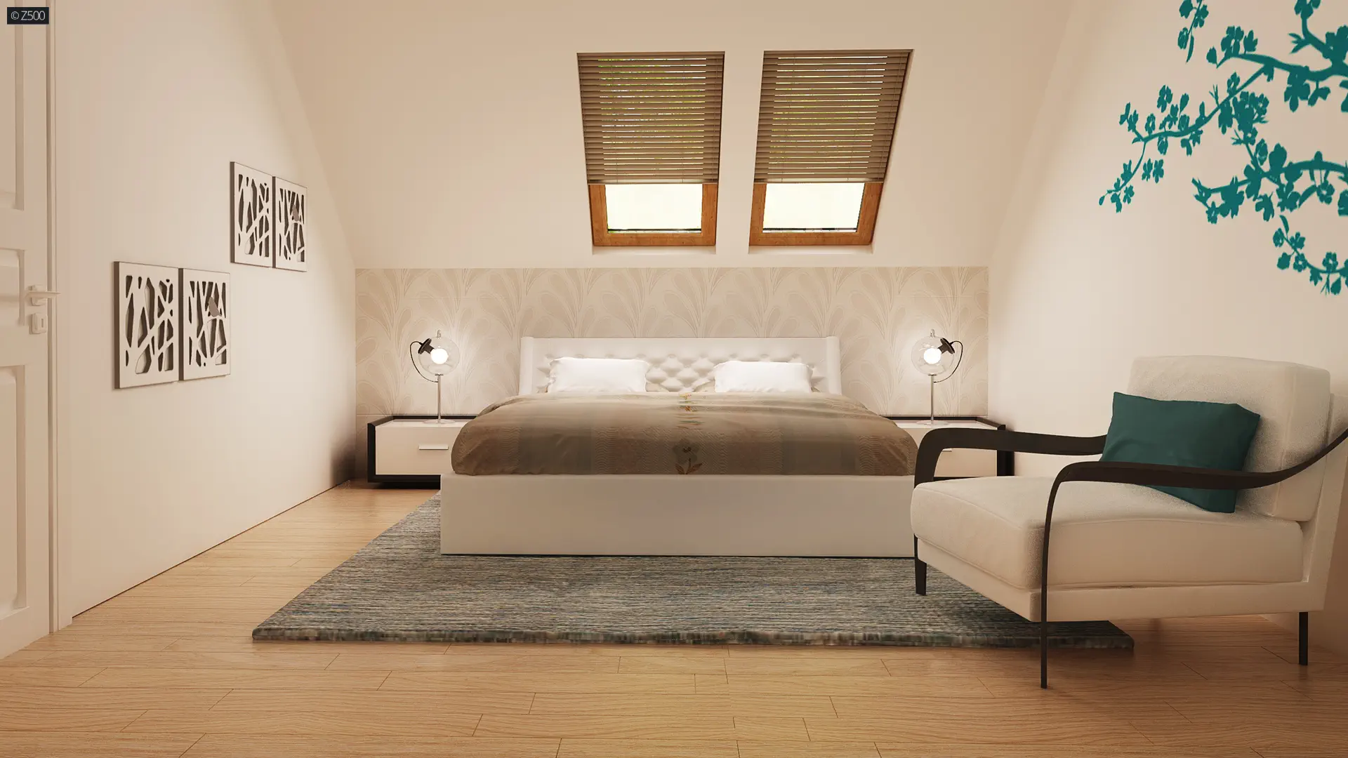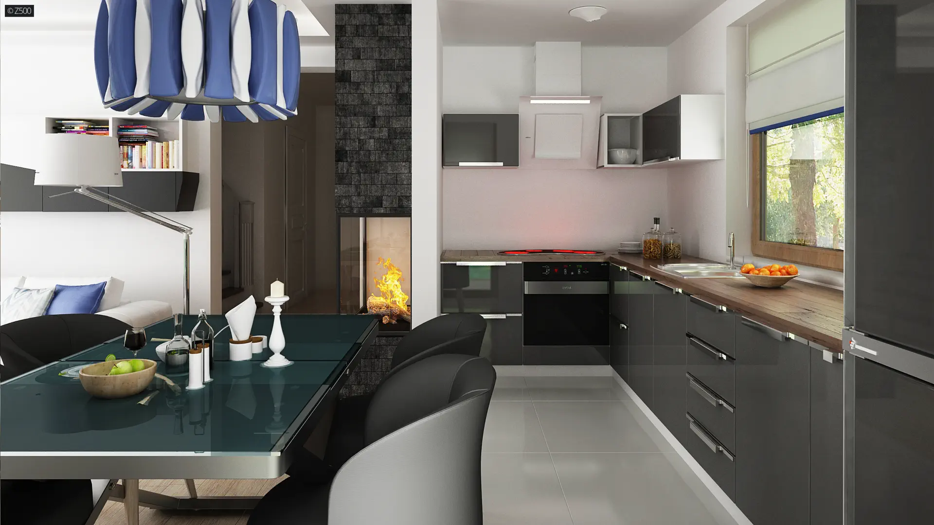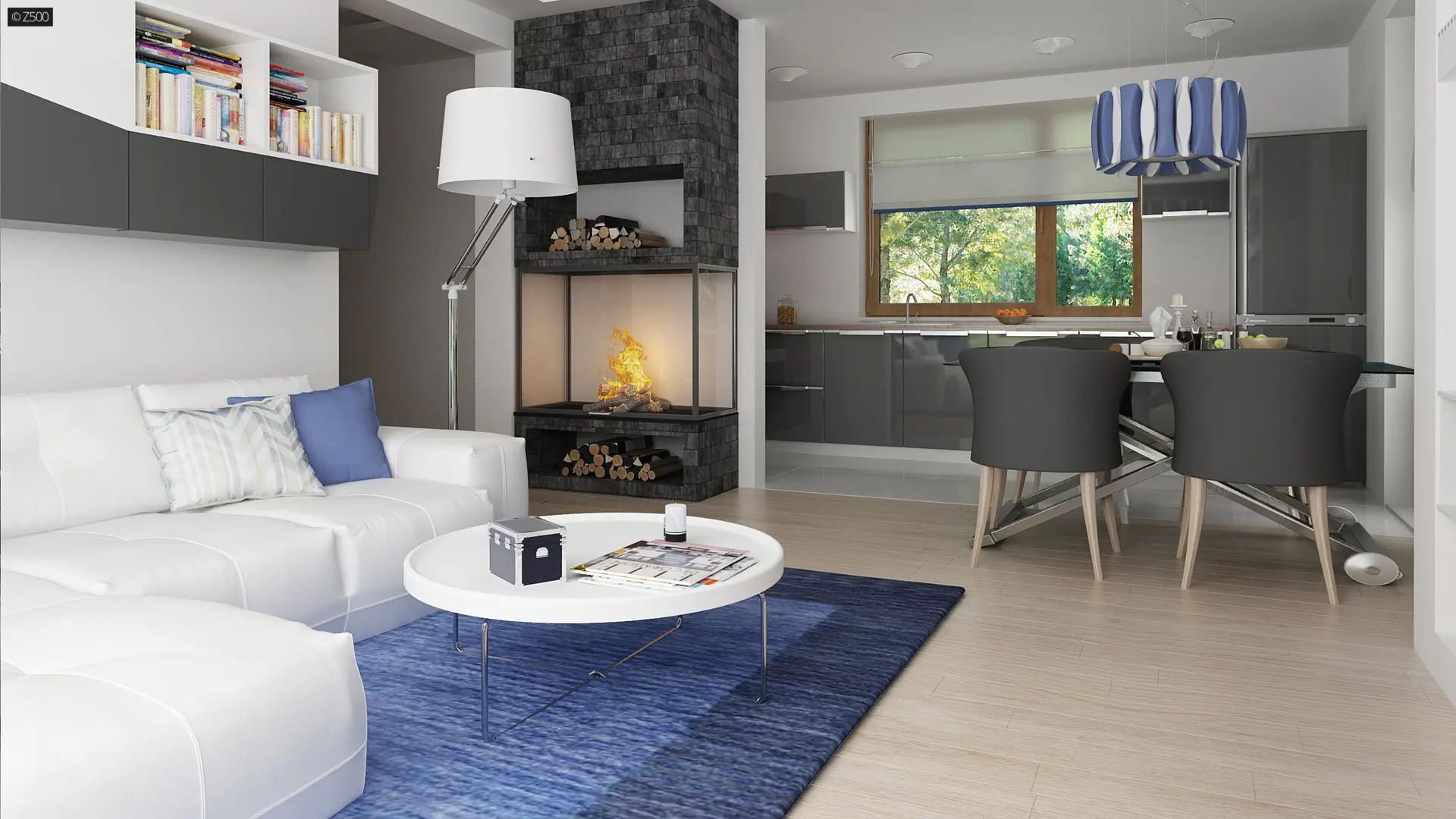 Z184 to dwie części: główna z dużą strefą dzienną, dodatkowym pokojem na parterze, trzema sypialniami na piętrze, oraz mniejsza, idealna także pod wynajem. W obu częściach strefy dziennej znajduje się wygodna funkcjonalna kuchnia, miejsce na stół, salon z kominkiem. W mniejszej zaprojektowano pieco-kominek na ekologiczne, tanie pellety. Nie jest to dodatek konieczny, duże pomieszczenie gospodarcze obsługuje cały budynek, ogrzewa wszystkie pomieszczenia. Na poddaszu mieszczą się trzy pokoje, największa sypialnia posiada własną garderobę. W mniejszej części wydzielono dwa pokoje z balkonem i łazienkę. Konstrukcja umożliwia aranżację tej przestrzeni dowolnie, ścianki można przesuwać lub całkiem usunąć, zostawiając open space np: pod aranżację studia.