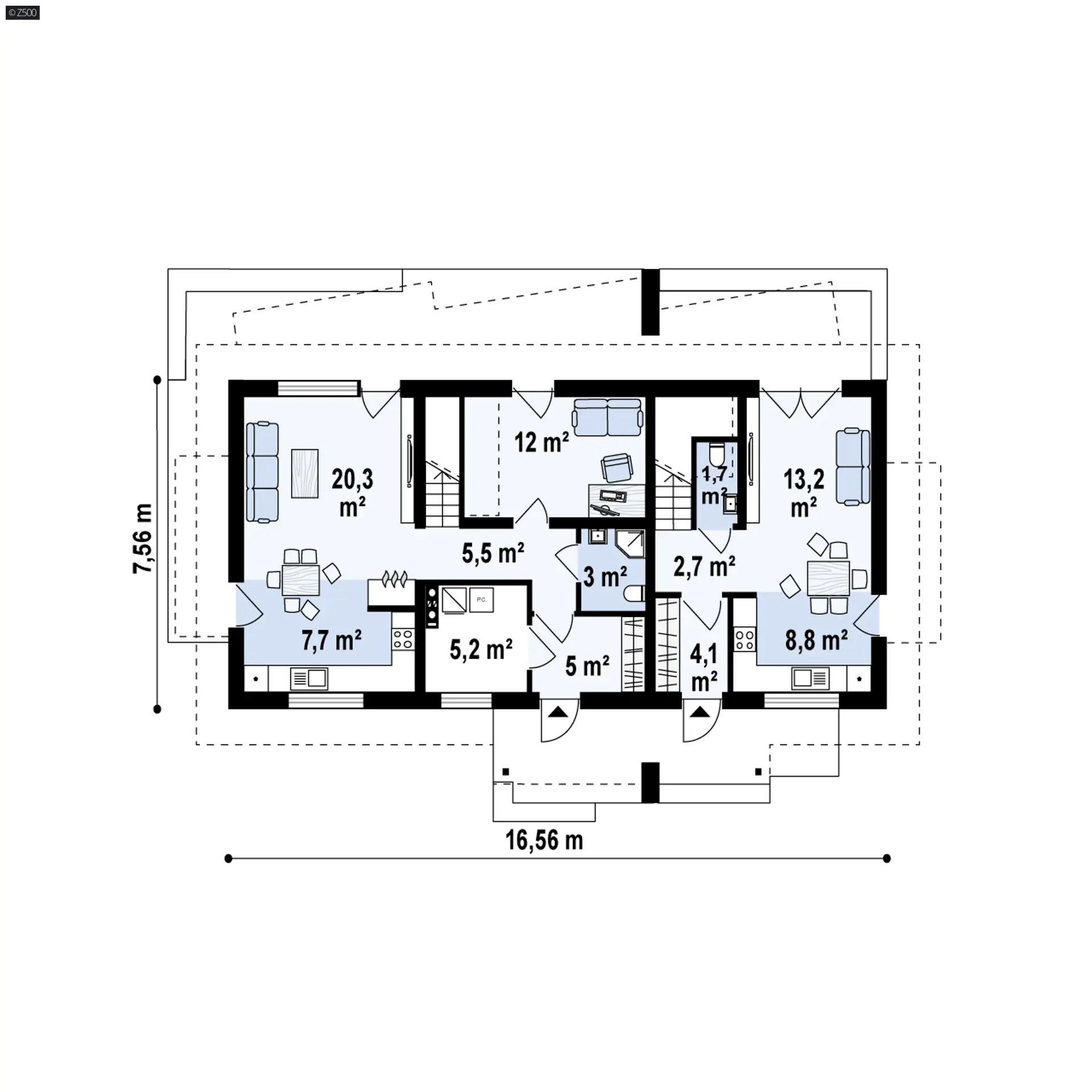 Z184 to dom z osobnymi wejściami. Atutem projektu jest możliwość adaptacji mniejszego mieszkania na wiele sposobów w zależności od potrzeb.
