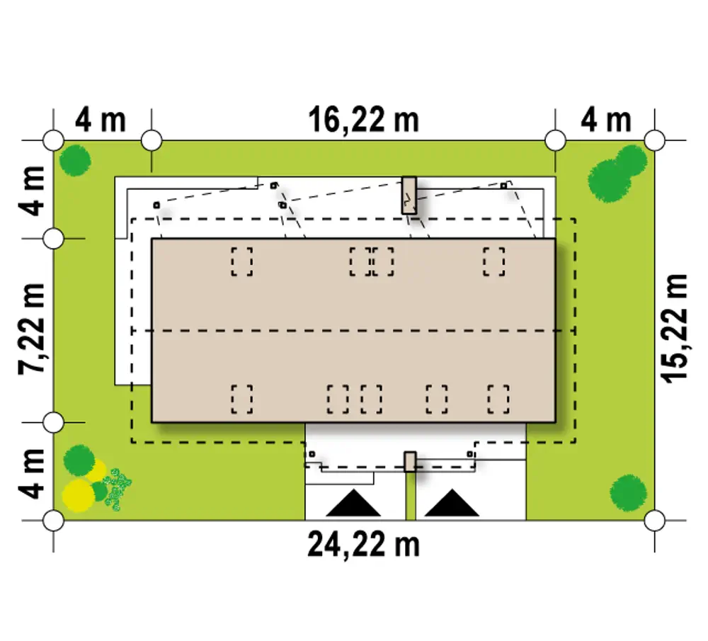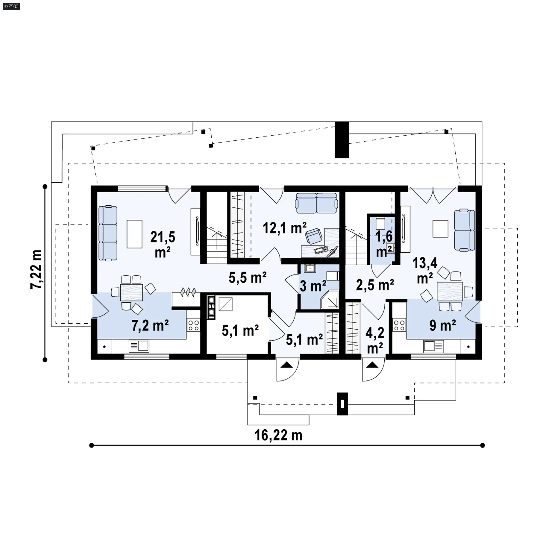 Z184 to dom dwurodzinny z osobnymi wejściami. Atutem projektu jest możliwość adaptacji mniejszego mieszkania na wiele sposobów w zależności od potrzeb.