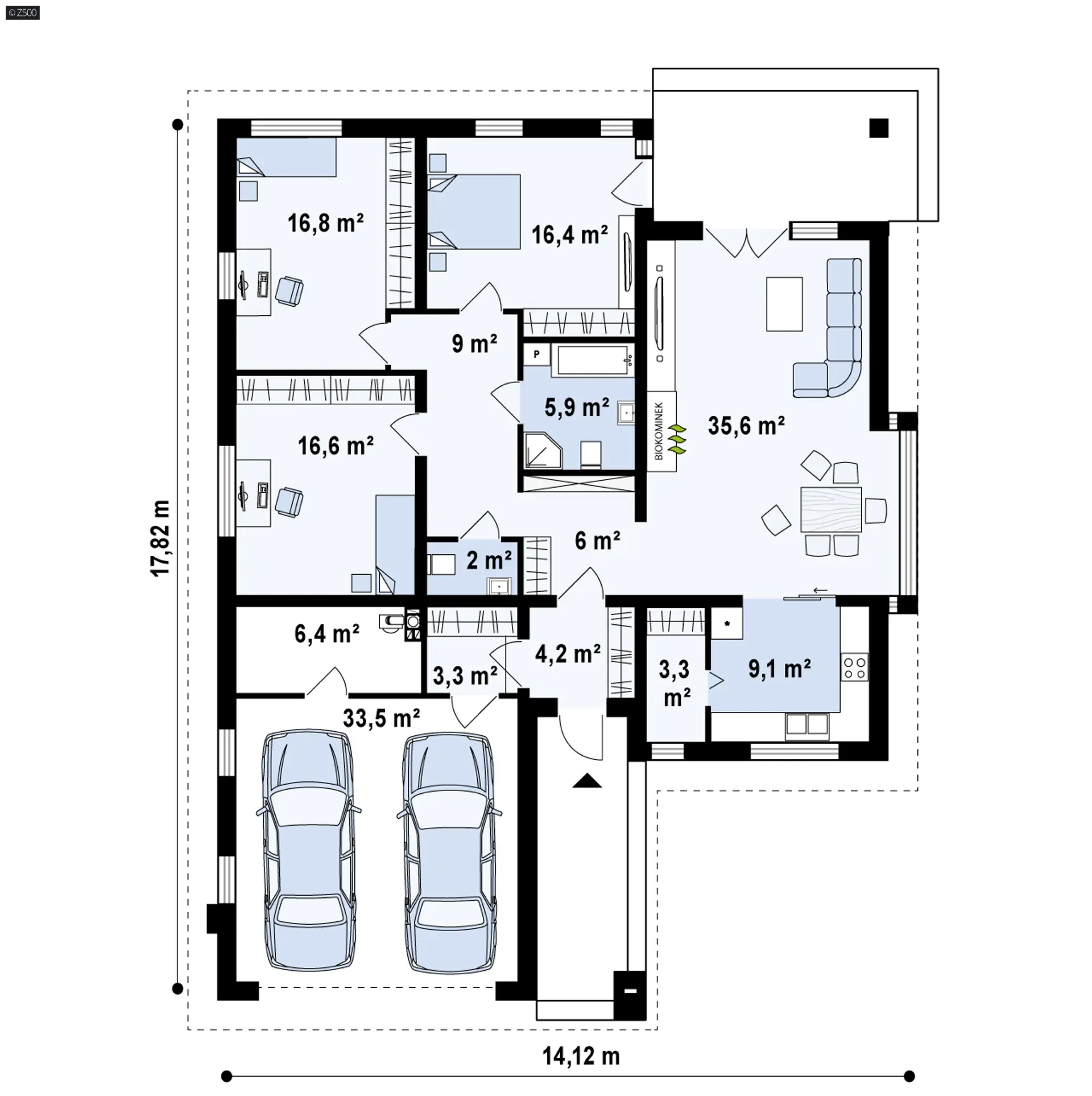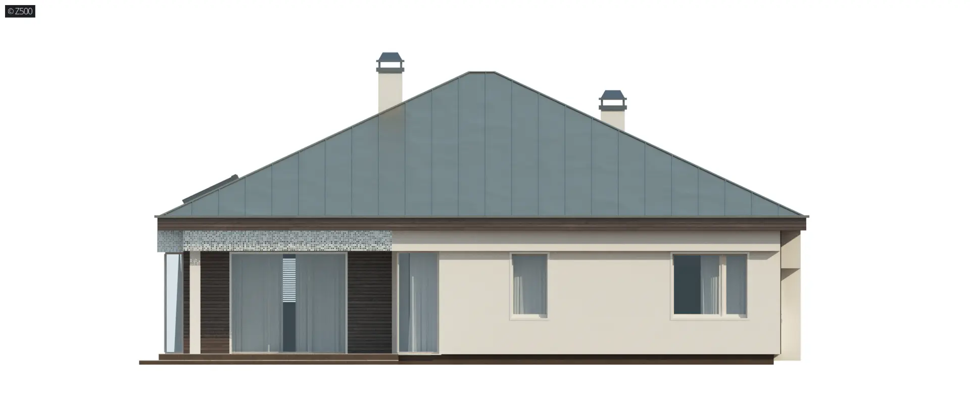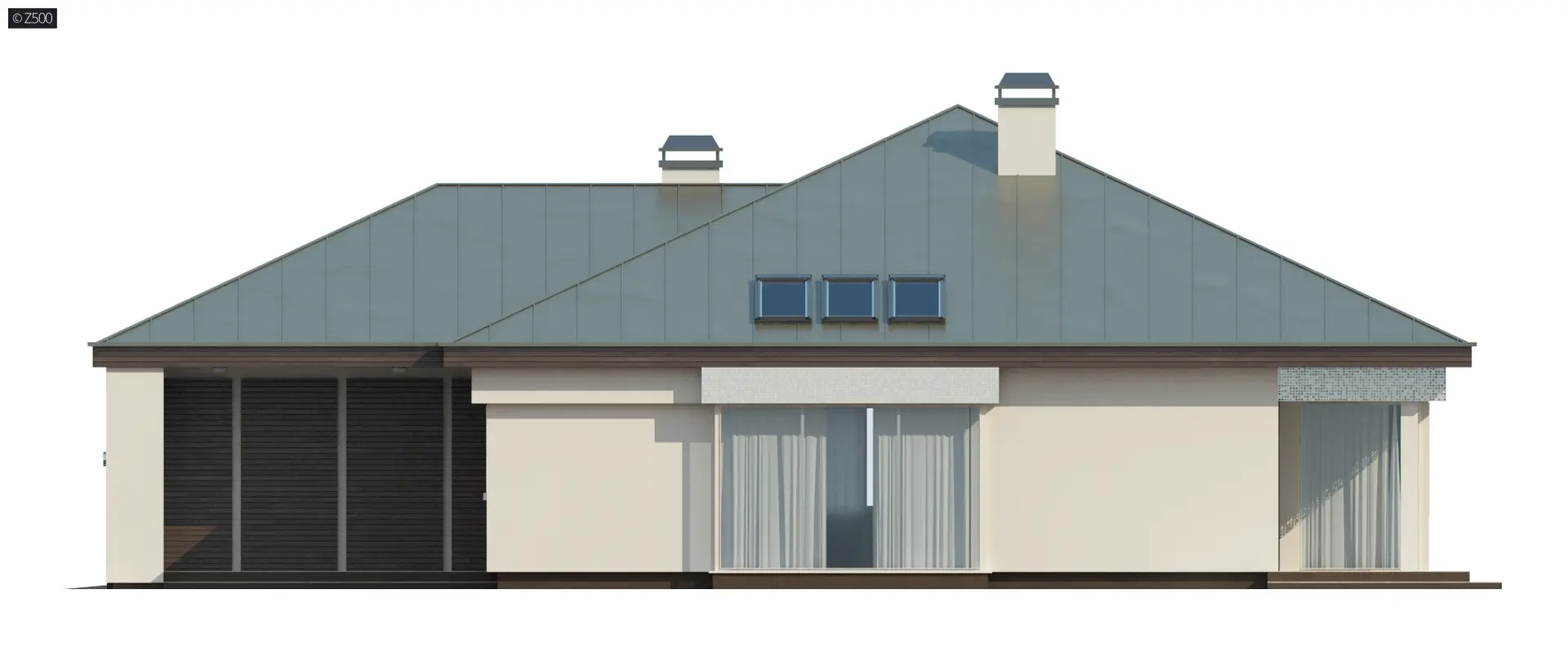 Z200 to komfortowy dom parterowy z garażem dwustanowiskowym dostępnym od frontu budynku. Elewacje i bryła wyróżniają się nowoczesną aczkolwiek spokojną i wyważoną architekturą z oryginalnymi dodatkami.