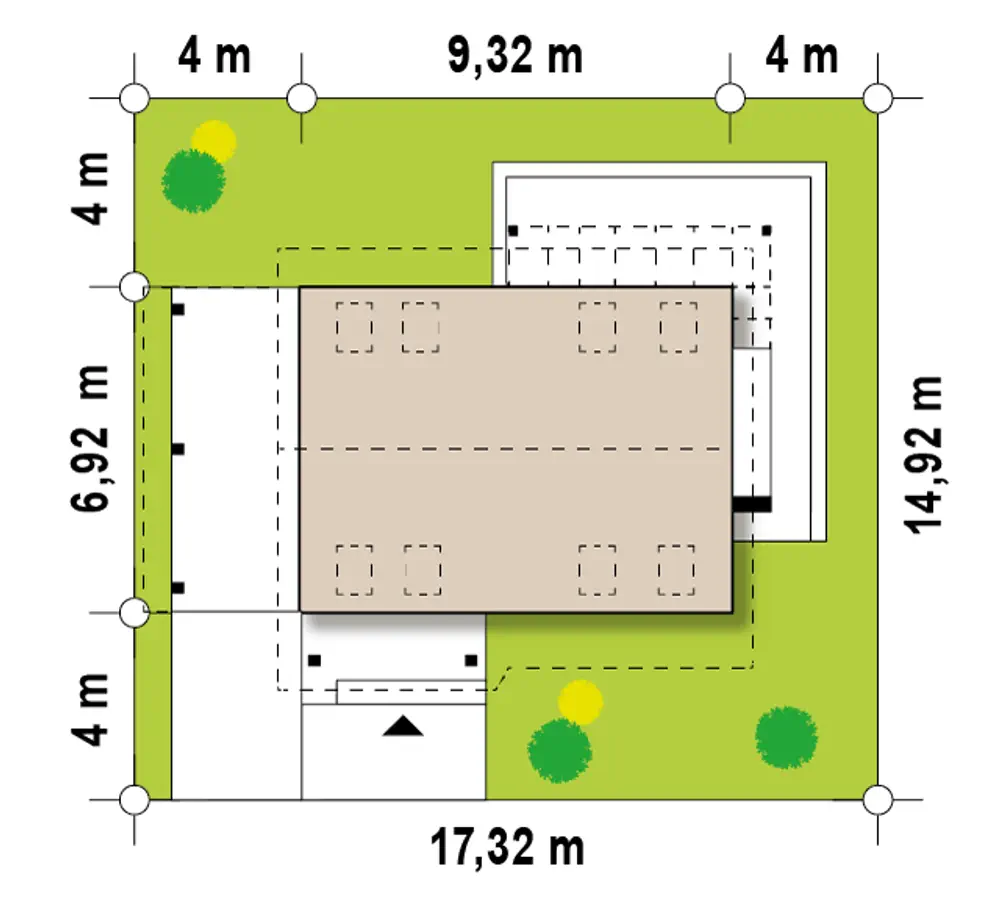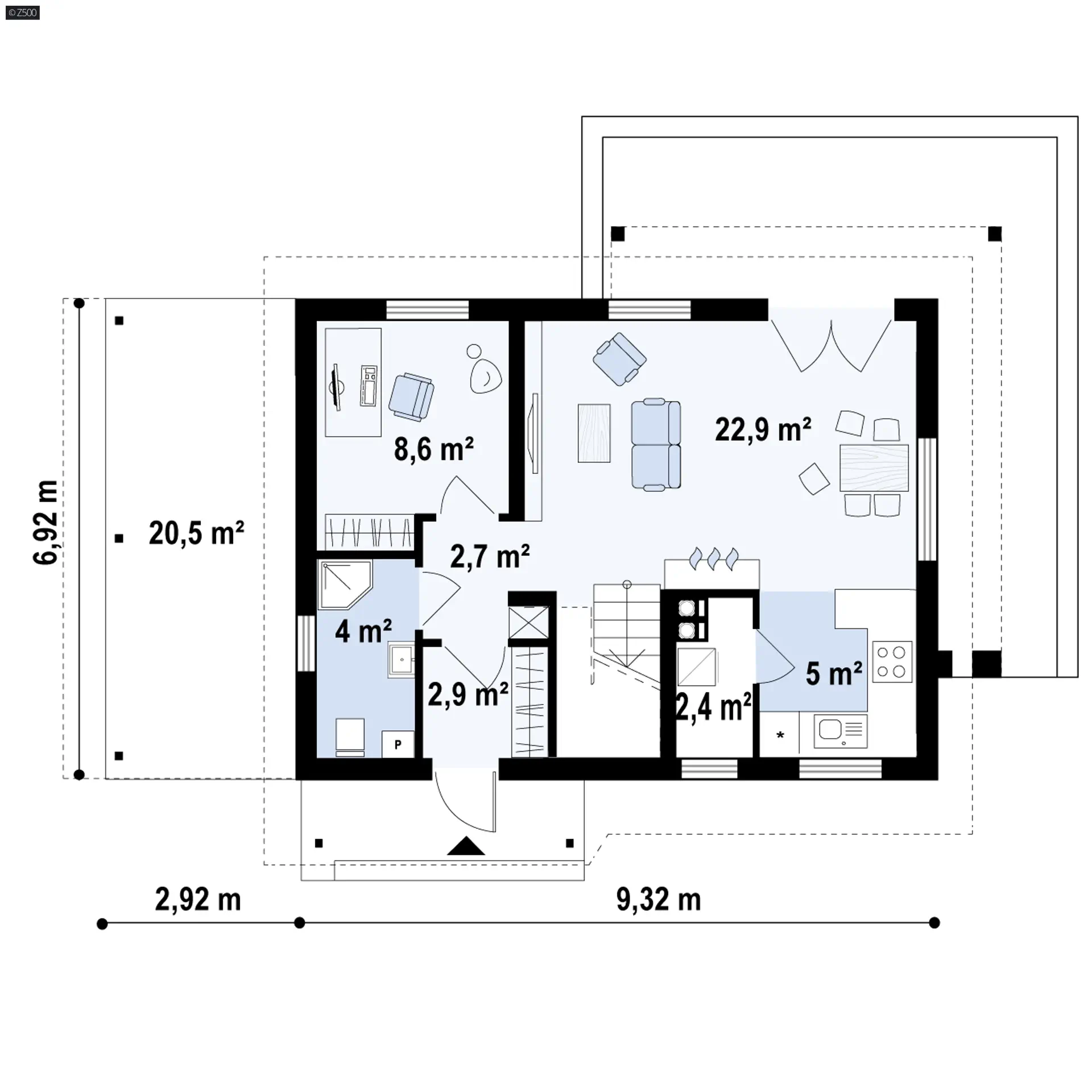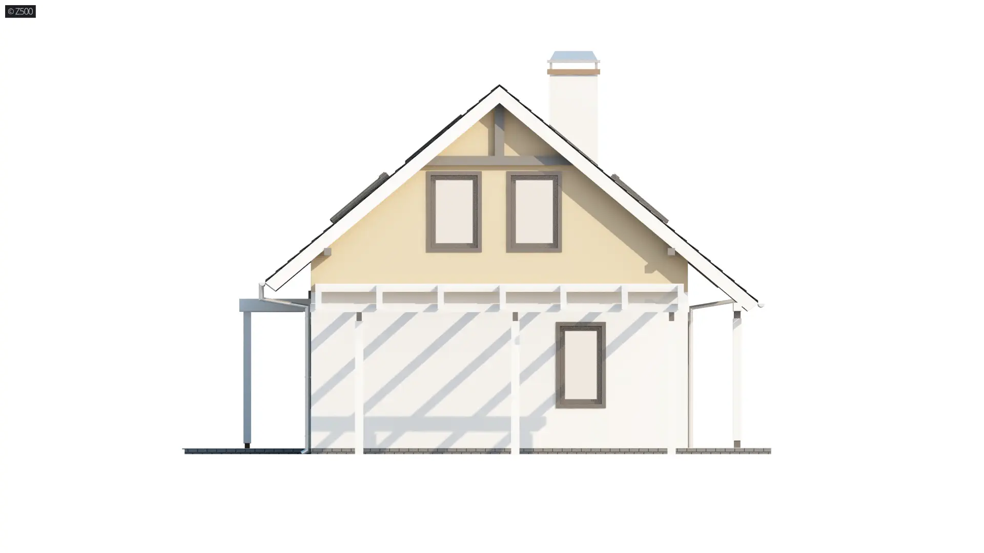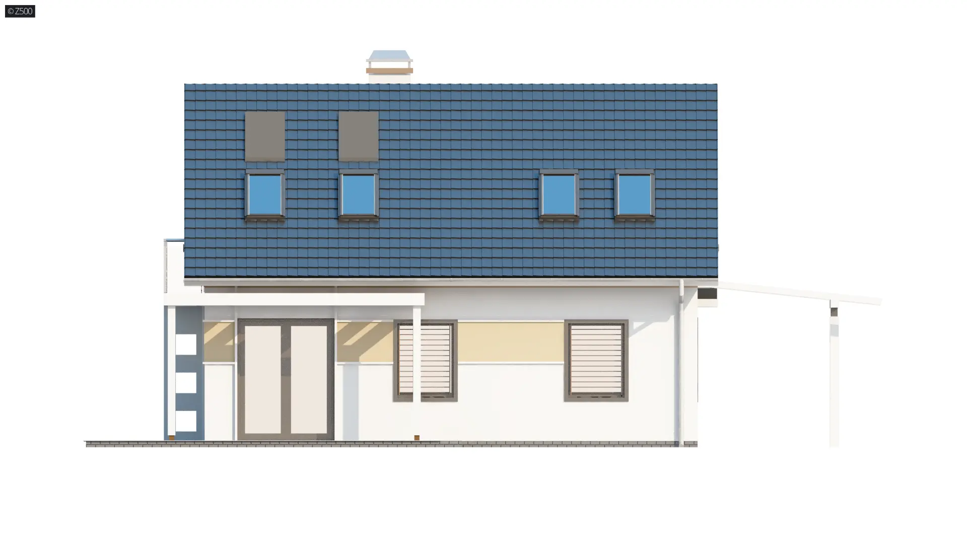 To niewielki i bardzo funkcjonalny projekt domu. Zgrabna, prosta bryła jest szybka i łatwa w budowie. Warto zwrócić uwagę również na funkcjonalną wiatę garażową.