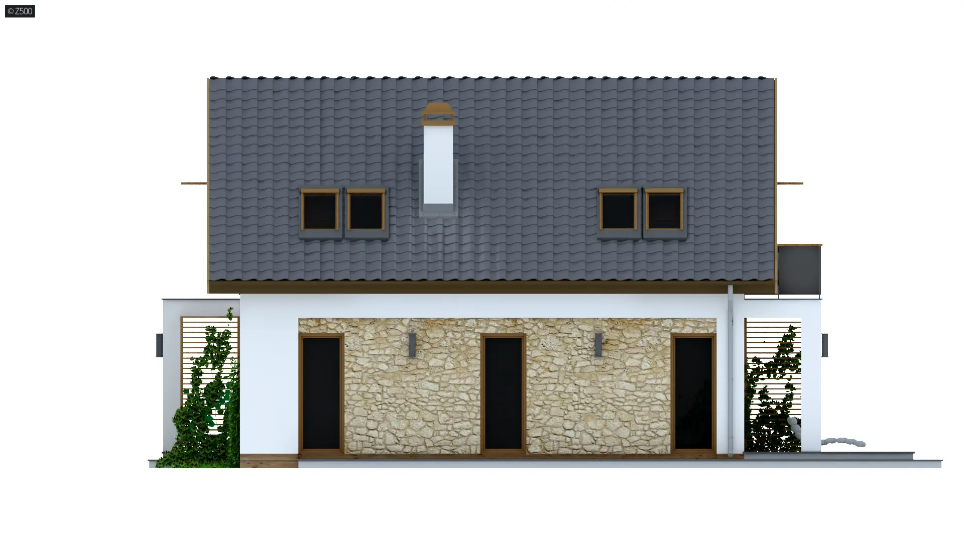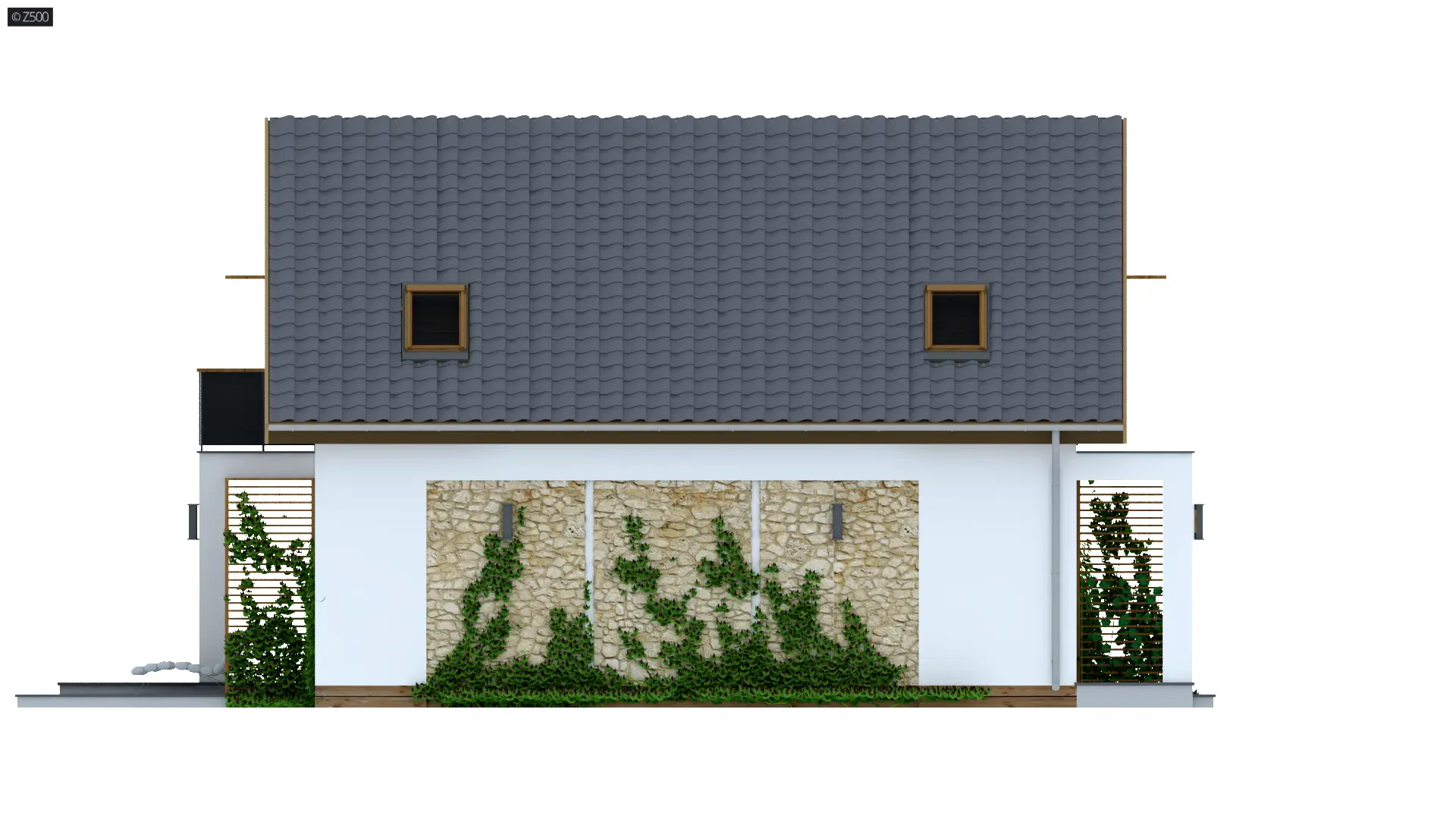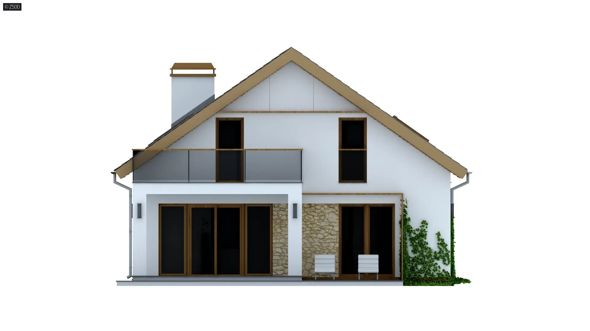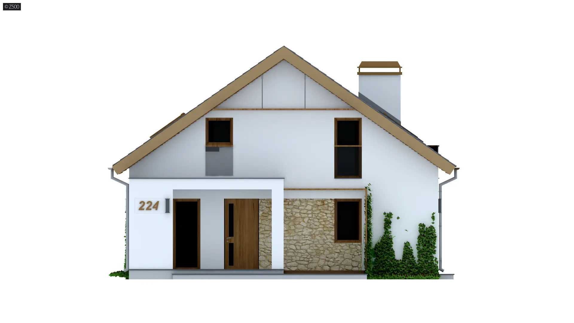Z224 to propozycja dla inwestorów szukających projektu oryginalnego, ale jednocześnie nawiązującego do tradycji. Dwuspadowy dach i delikatne okapy eksponują prosty, geometryczny kształt bryły. Od frontu urozmaica ją biała prosta rama, będąca jednocześnie zadaszeniem podestu wejściowego, a od ogrodu – balkon płynnie przechodzący w pergolę osłaniającą taras.