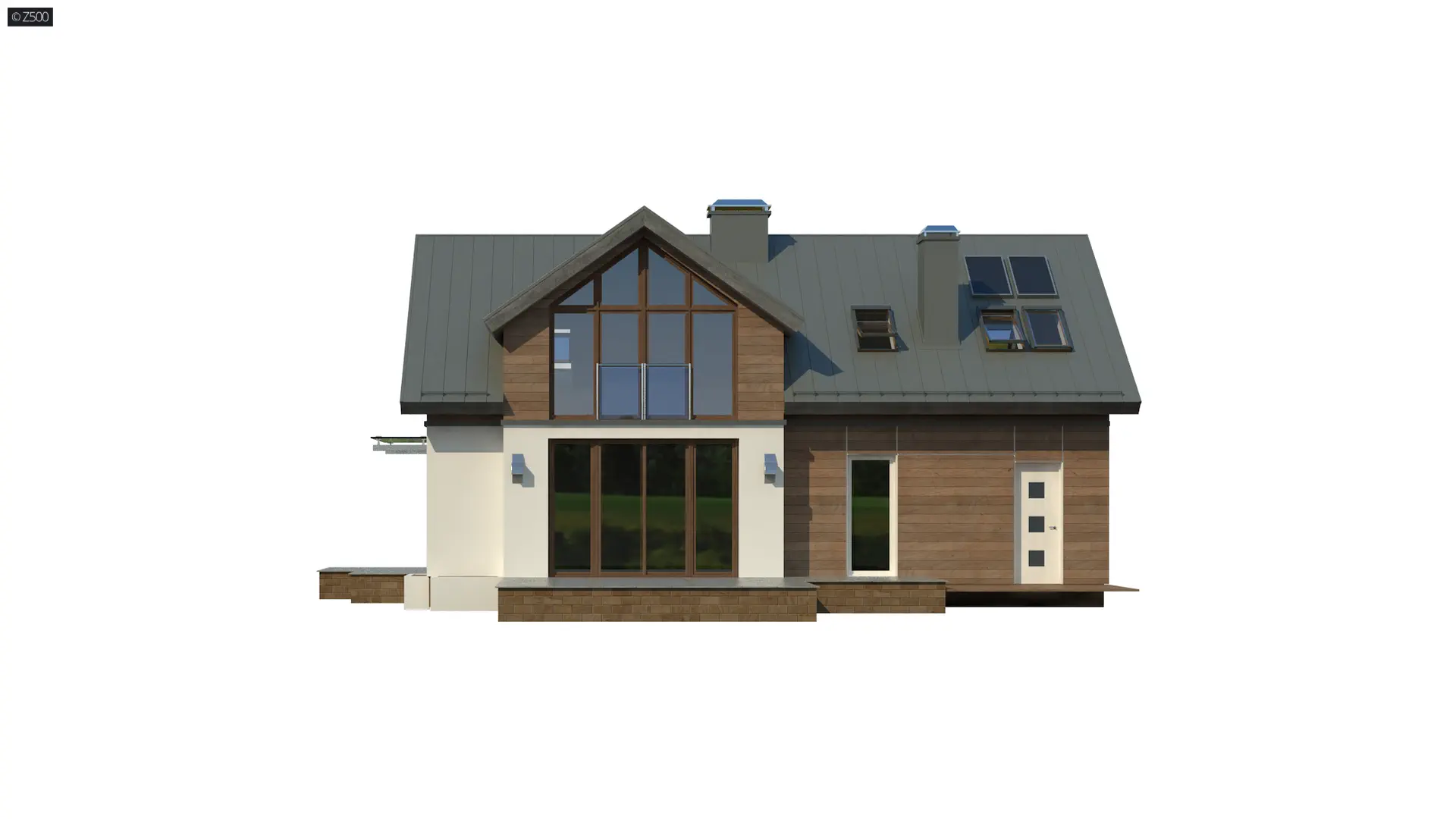 Z226 to propozycja domu z poddaszem użytkowym i garażem jednostanowiskowym. Nowoczesny wygląd zawdzięcza dużym przeszkleniom, oryginalnej lukarnie oraz starannie dobranym dodatkom.