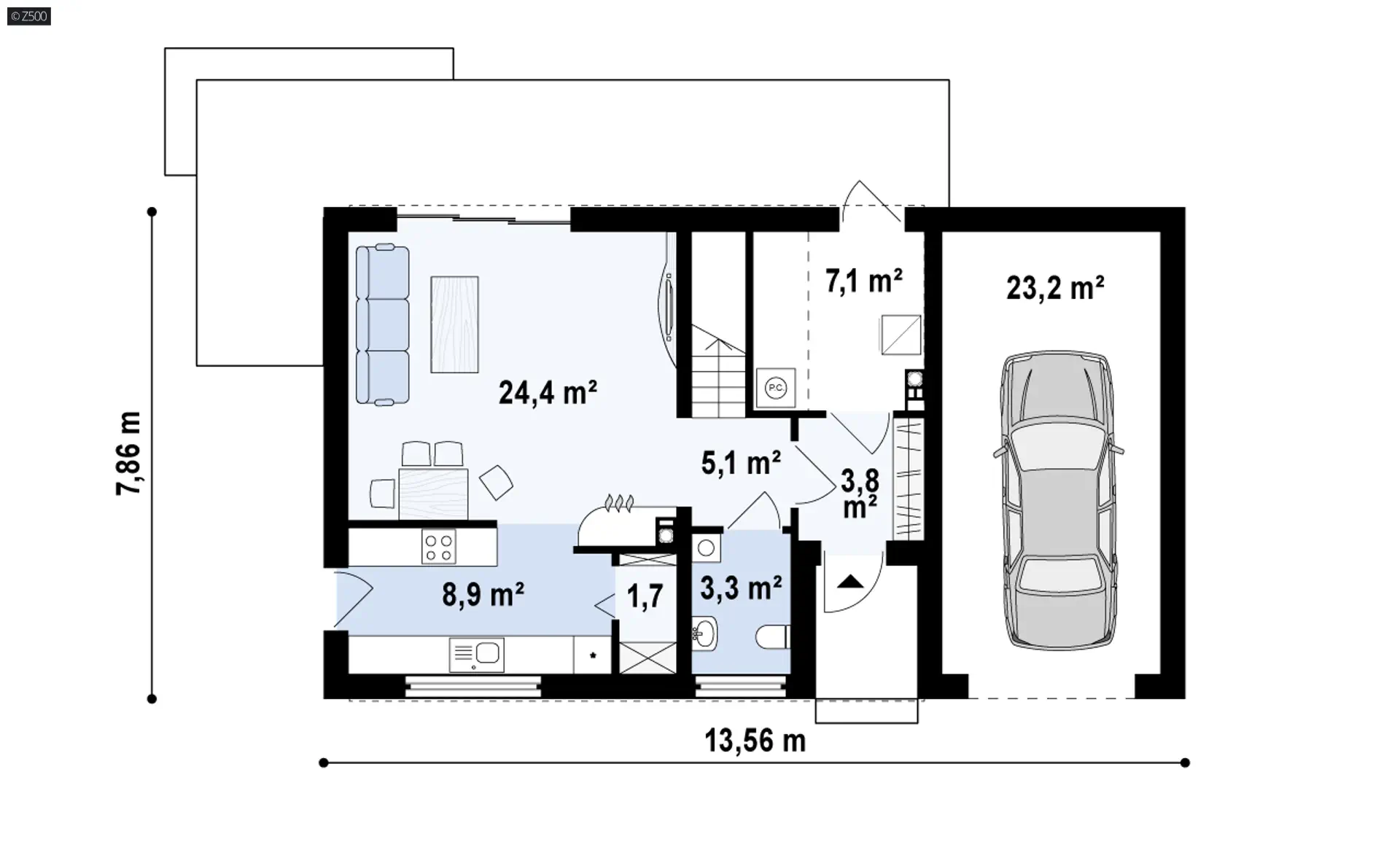 Z229 GP to zgrabny, kompaktowy dom z poddaszem użytkowym. Prosta bryła przekryta dwuspadowym dachem oraz drewniane elementy wykończenia elewacji nadają mu nowoczesnego charakteru.