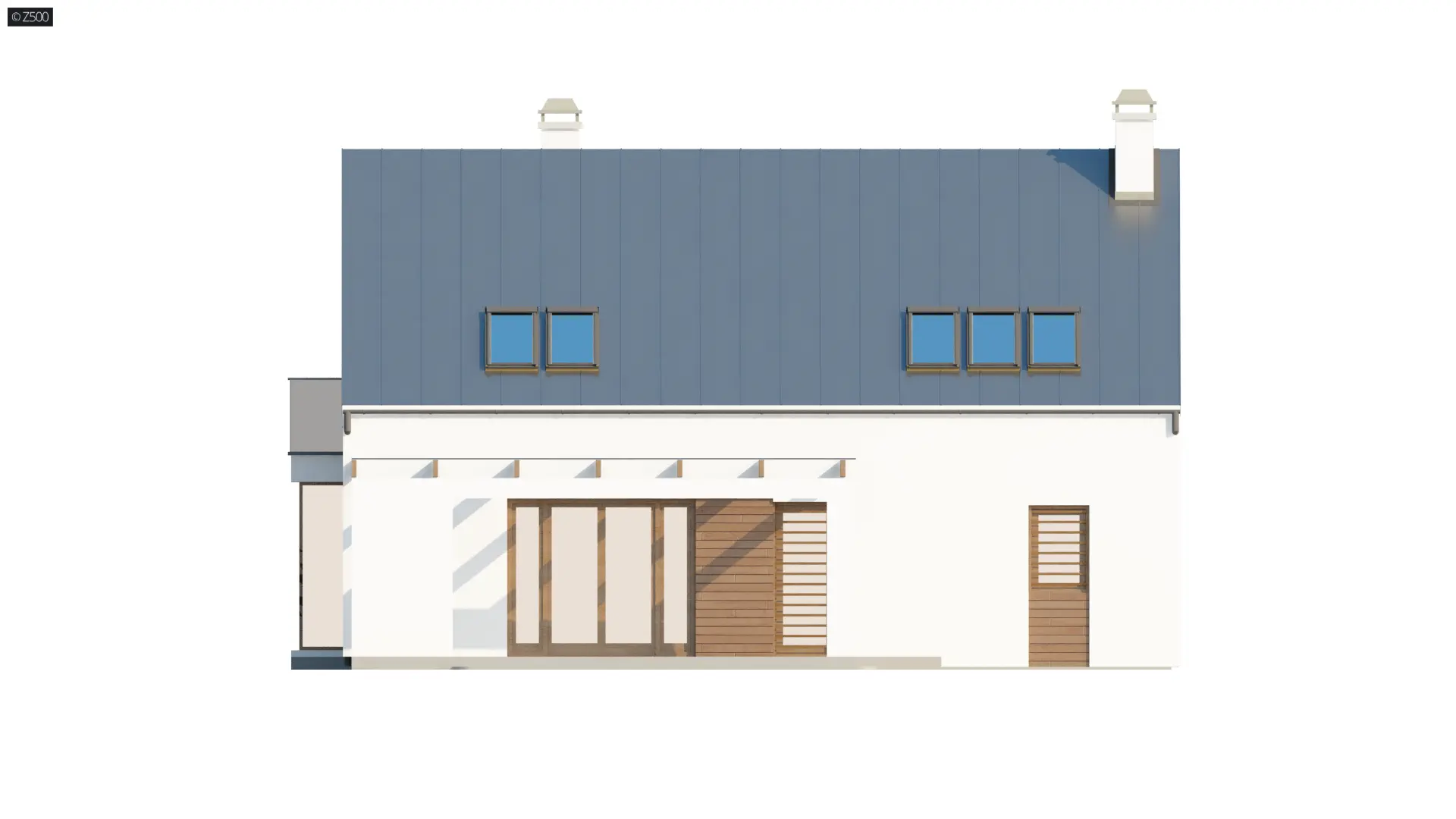 Z237 to propozycja małego domu o nowoczesnej stylistyce i współczesnym detalu. Zwarta bryła, o mocno docieplonych ścianach szczytowych wykończonych okładziną drewnianą, sprawia że dom ten ma małe zapotrzebowanie na energię.