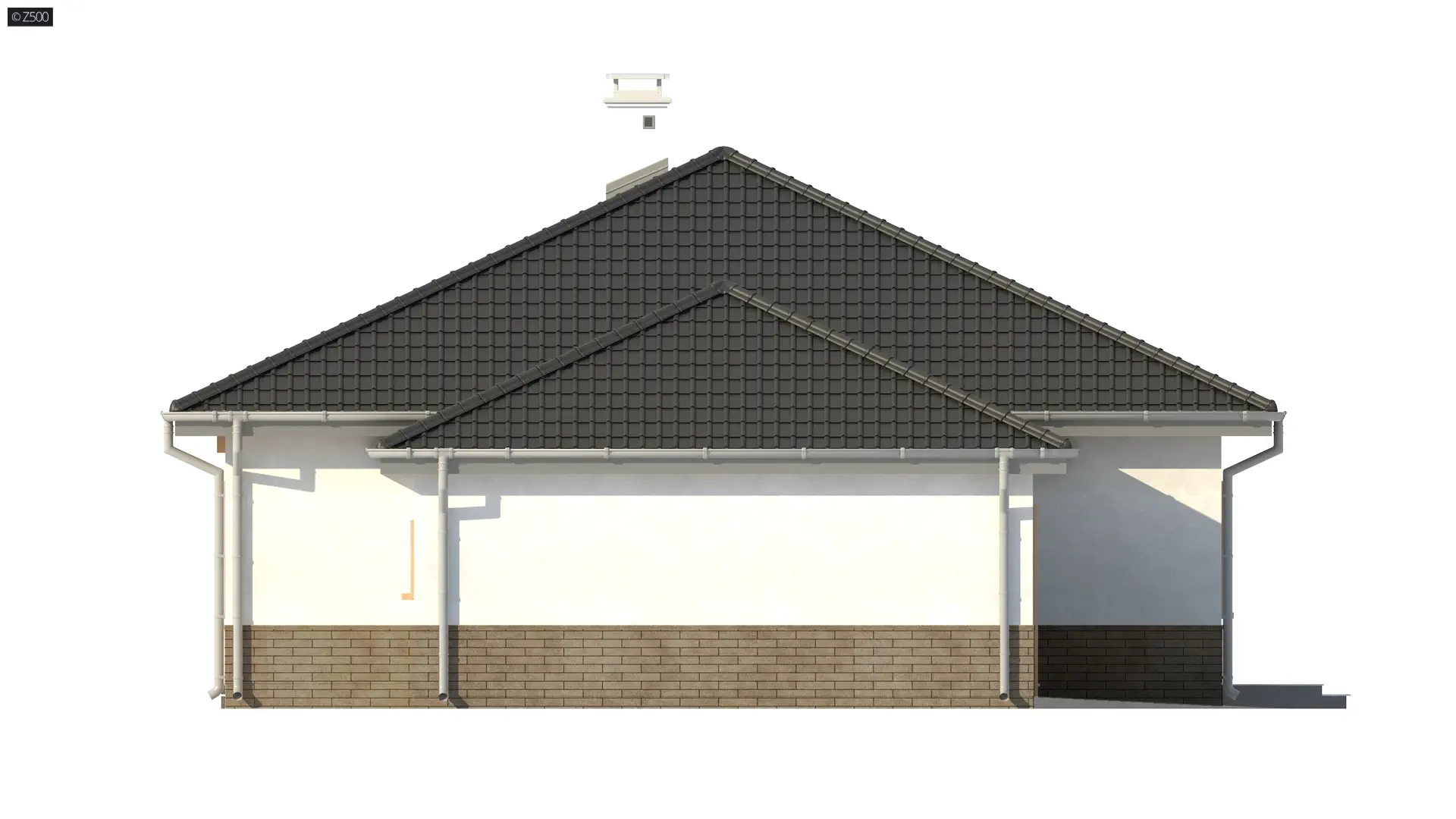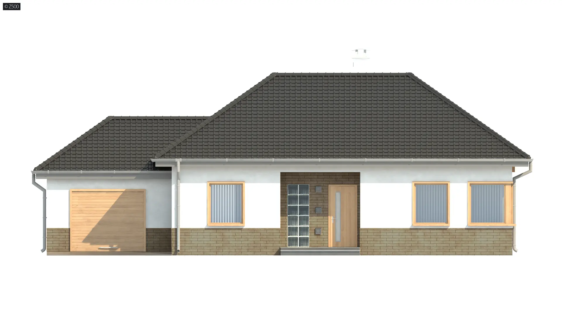 Przestronny dom parterowy z trzema pokojami, dużym garażem i dachem kopertowym