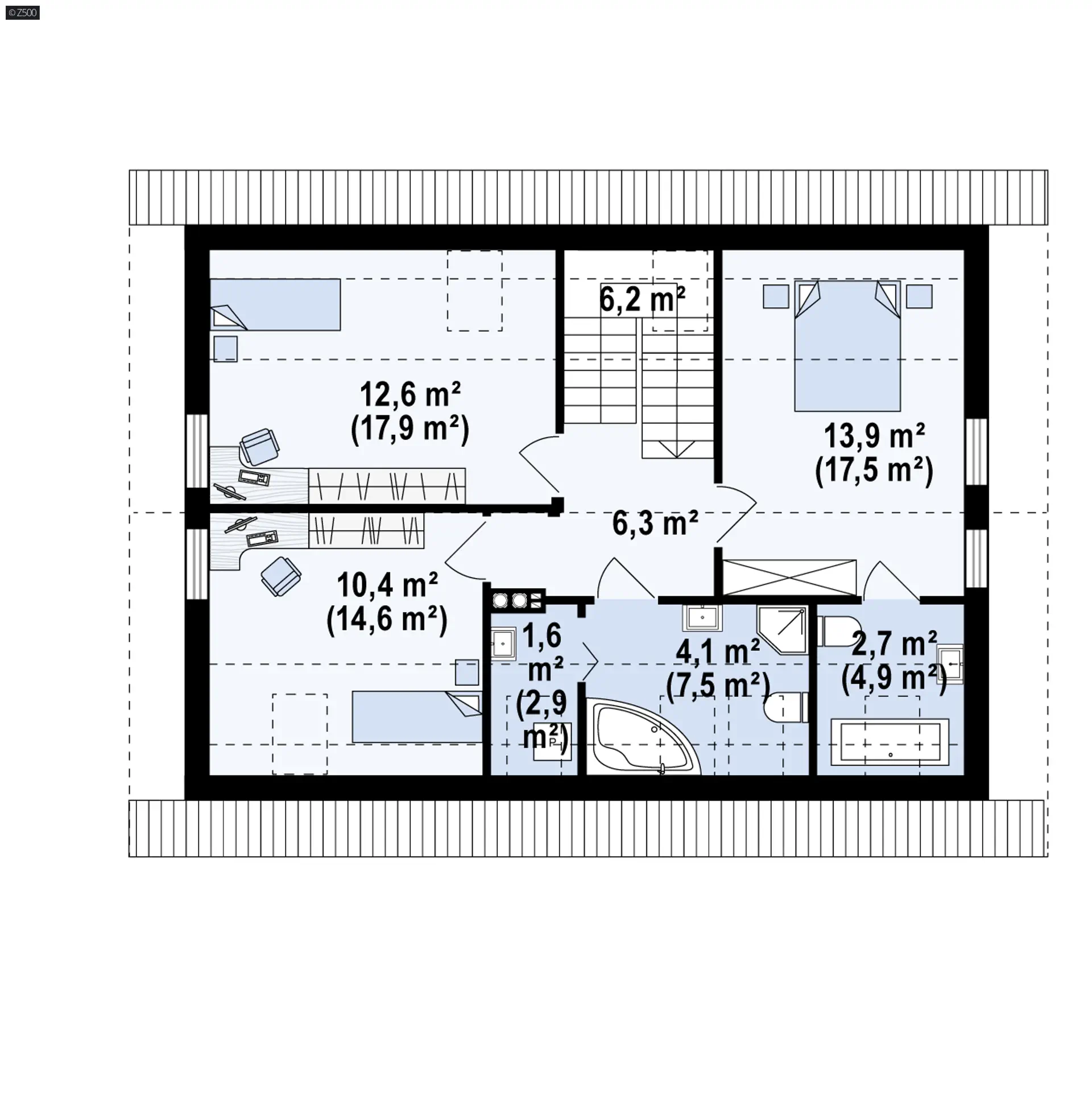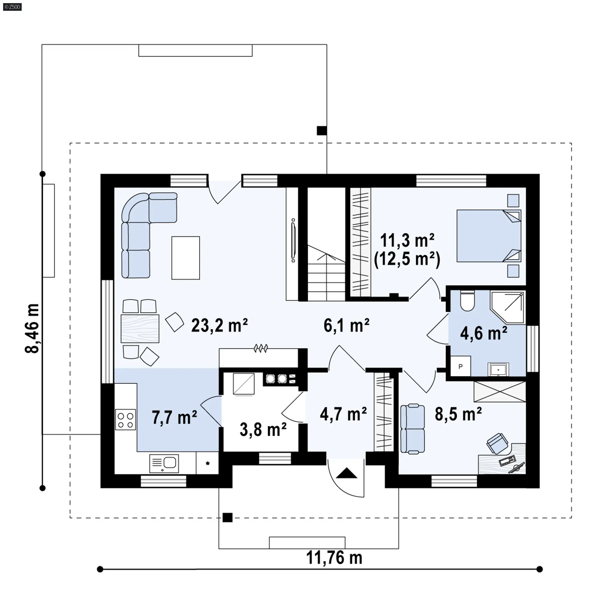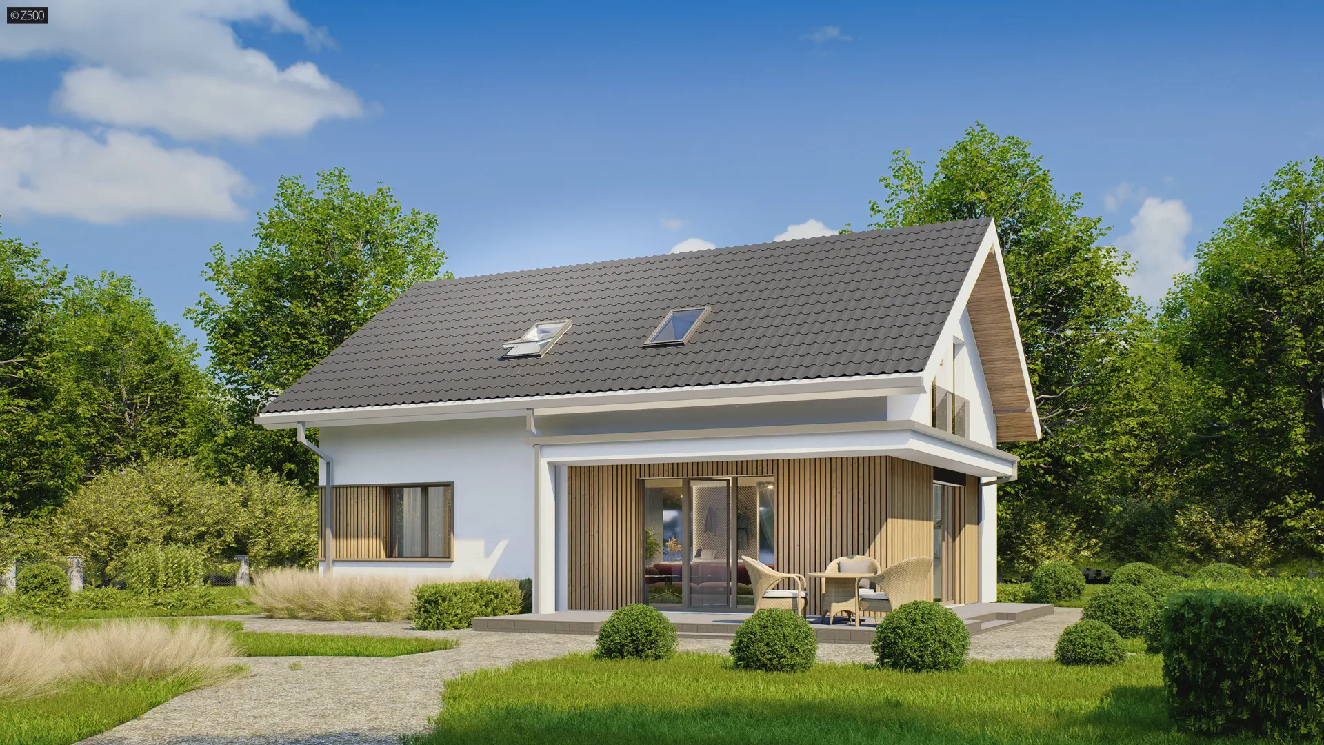Z244 to wygodny dom o prostej bryle z dwuspadowy dachem. Zaletą tego projektu jest w pełni użytkowe poddasze stanowiące jego część wypoczynkową.
