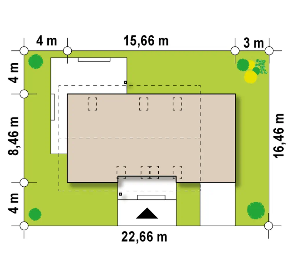 wariant z garażem 1-stanowiskowym po prawej stronie.
