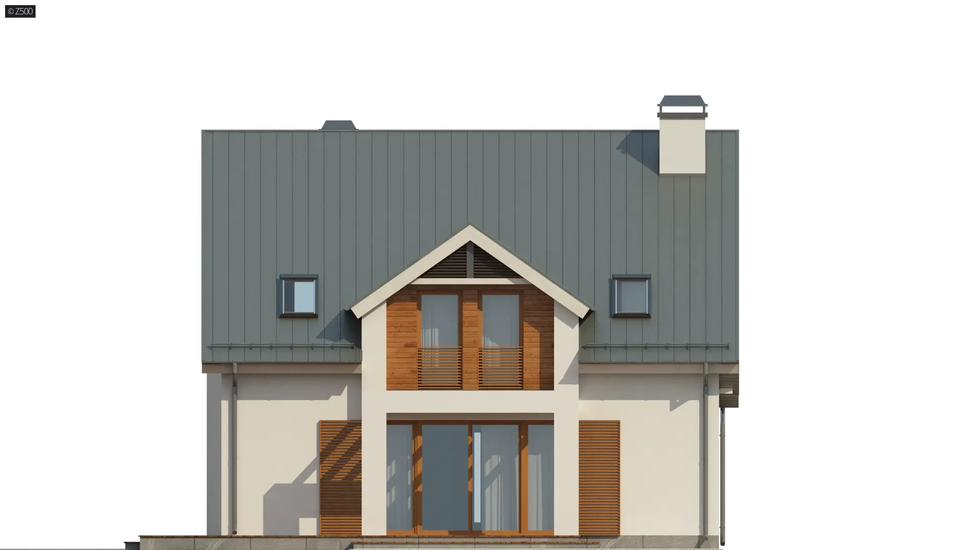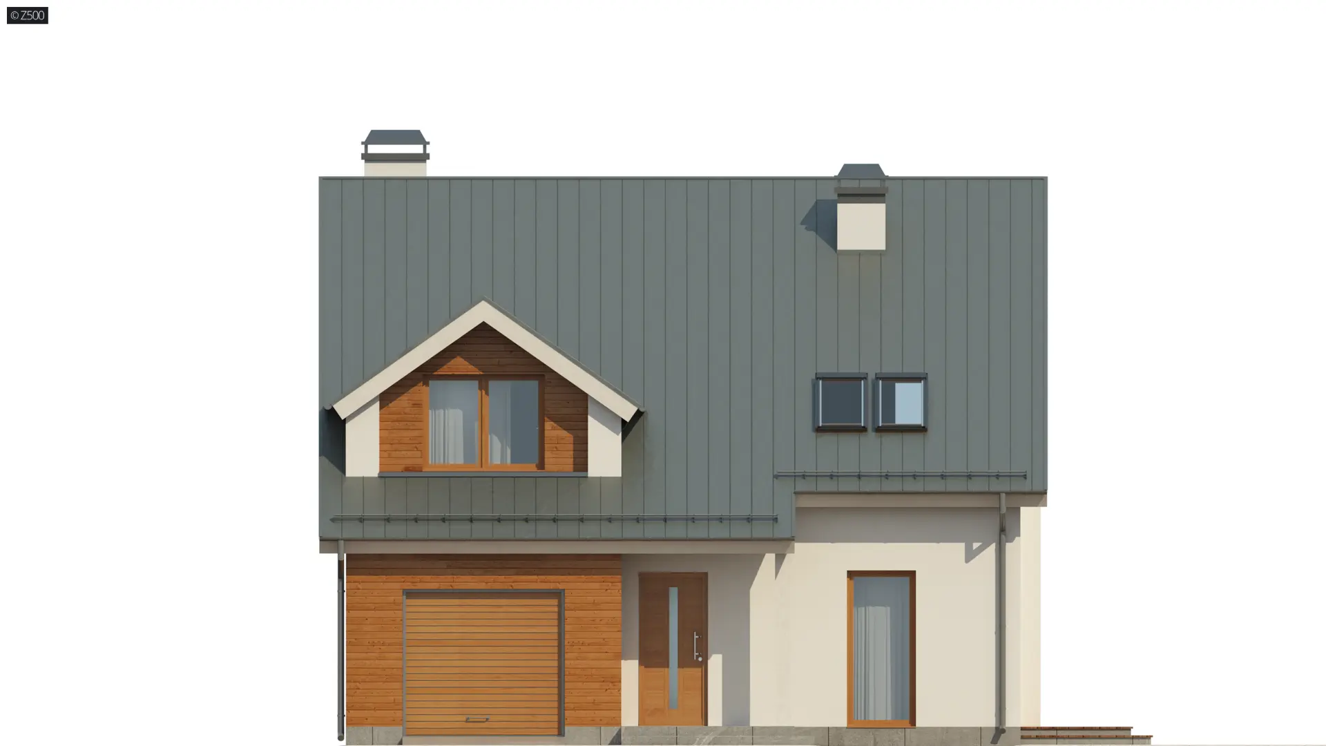 Z246 to dom z poddaszem użytkowym, przeznaczony dla 4-5 osobowej rodziny. Nieskomplikowana bryła, prosty dach z dwoma lukarnami to zalety tego budynku, podobnie jak przytulny chociaż nowoczesny wygląd elewacji. Urzeka swoim gustownym wyglądem – harmonijne połączenie surowej bieli i ciepłego drewna sprawia, że dom prezentuje się zachwycająco.