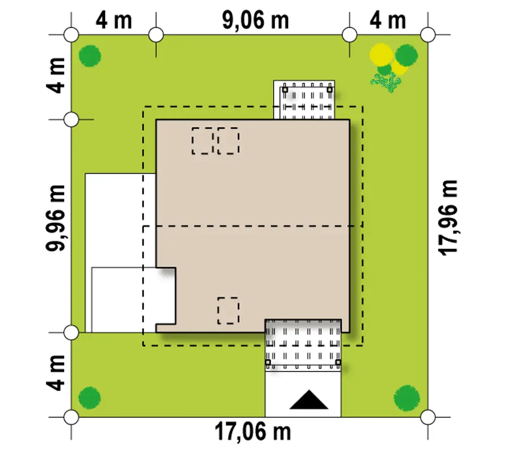 Idealny do usytuowania na działce z wjazdem od wschodu.