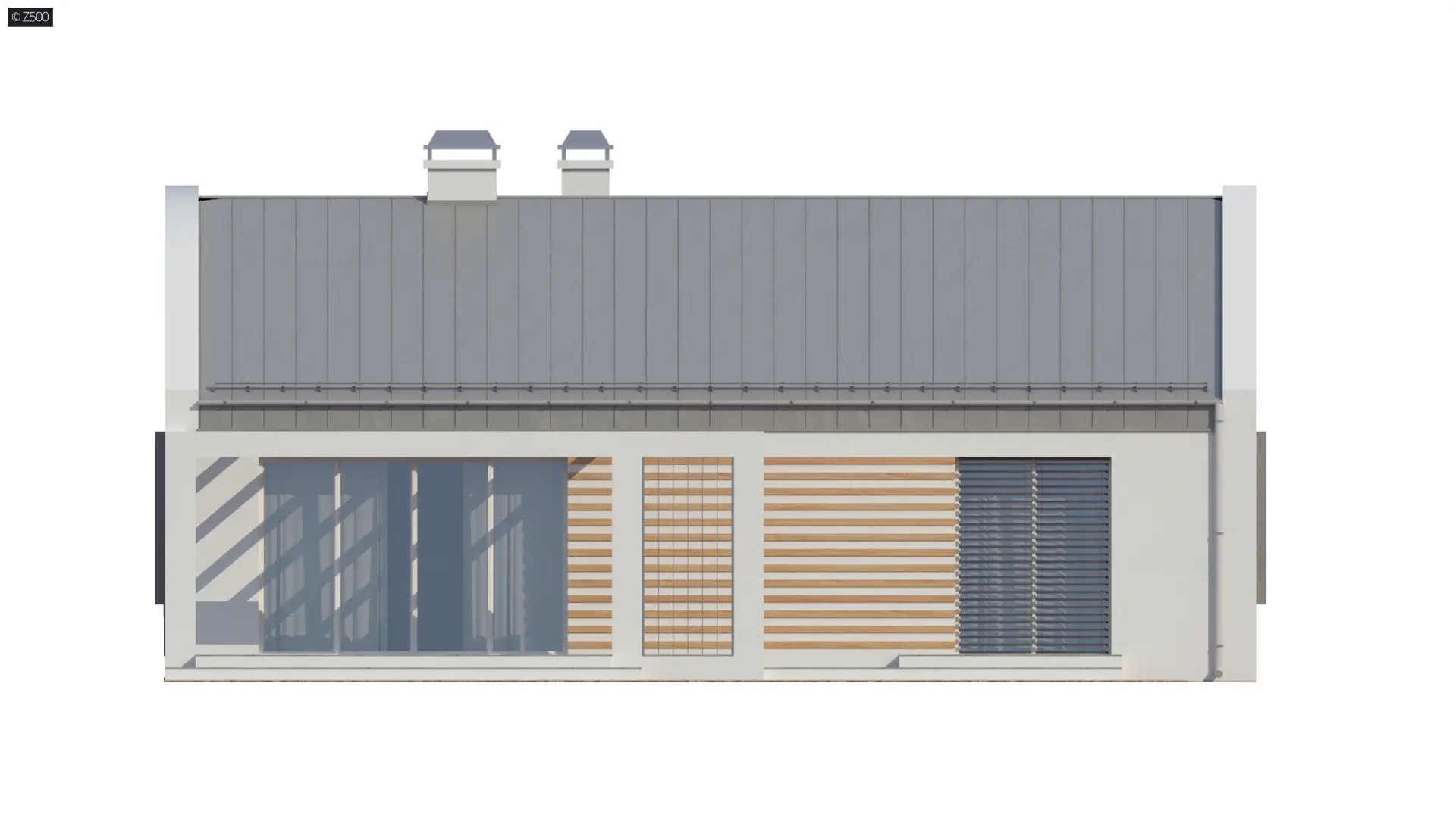 Z251 to projekt małego, ale funkcjonalnego domu z dwuspadowym dachem. Prostą bryłę urozmaicają ciekawie wkomponowane drewniane elementy, które nadają mu ciekawego i nowoczesnego wyglądu.