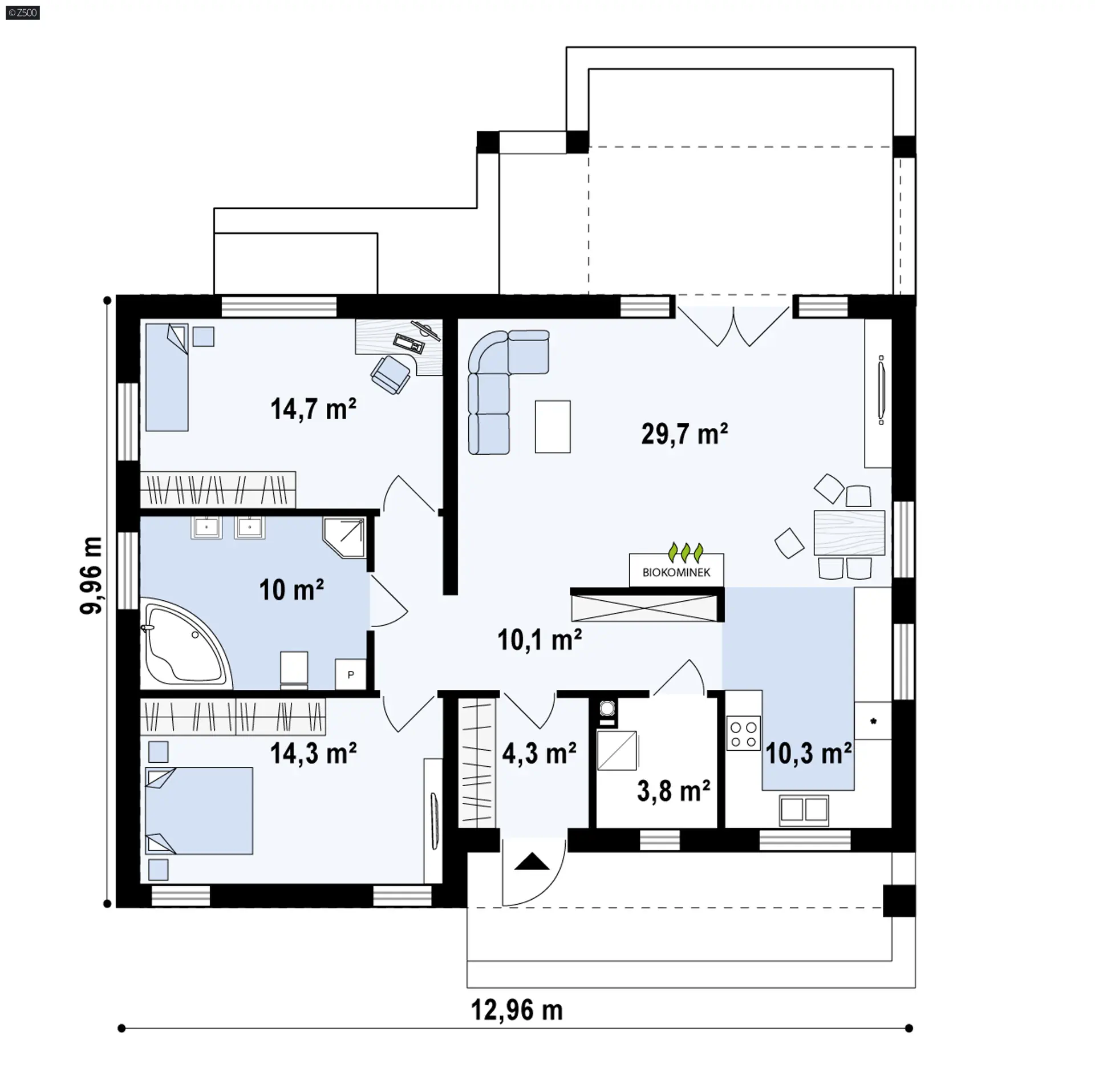 Projekt Z251 to idealna propozycja dla osób poszukujących parterowego i energooszczędnego domu. Ciekawie zaaranżowana przestrzeń powoduje, że budynek jest funkcjonalny i wygodny w użytkowaniu.