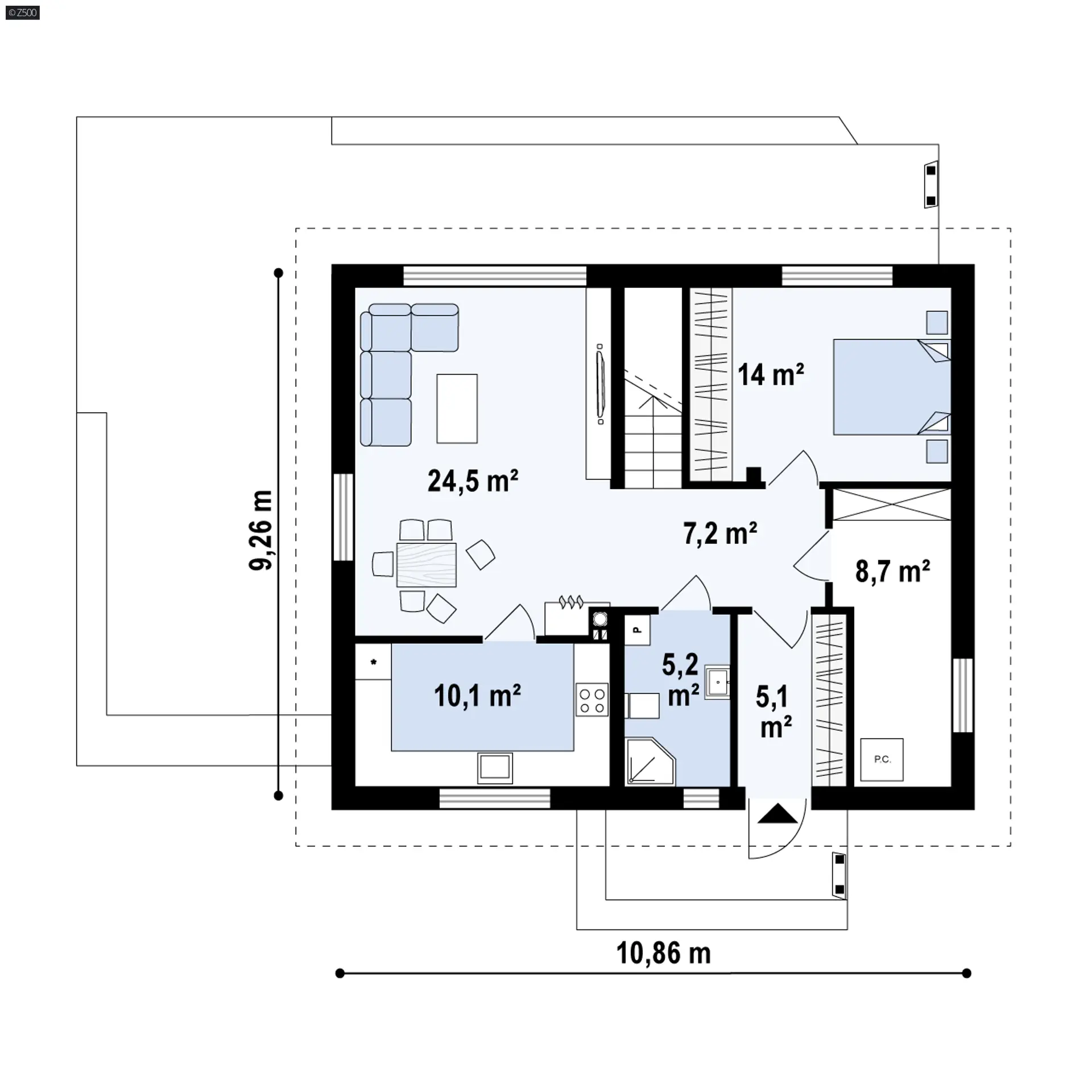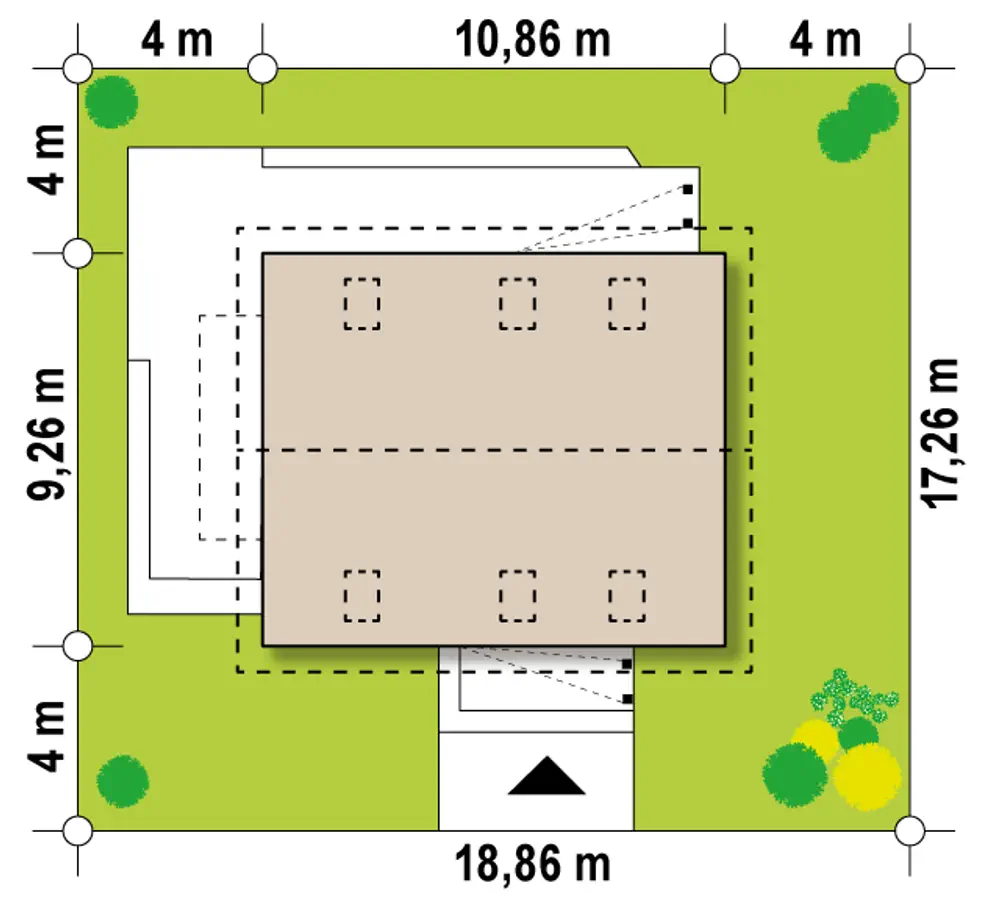 Z255 B pc to dom z użytkowym poddaszem. Elewacja budynku została wykonana z białego tynku strukturalnego.