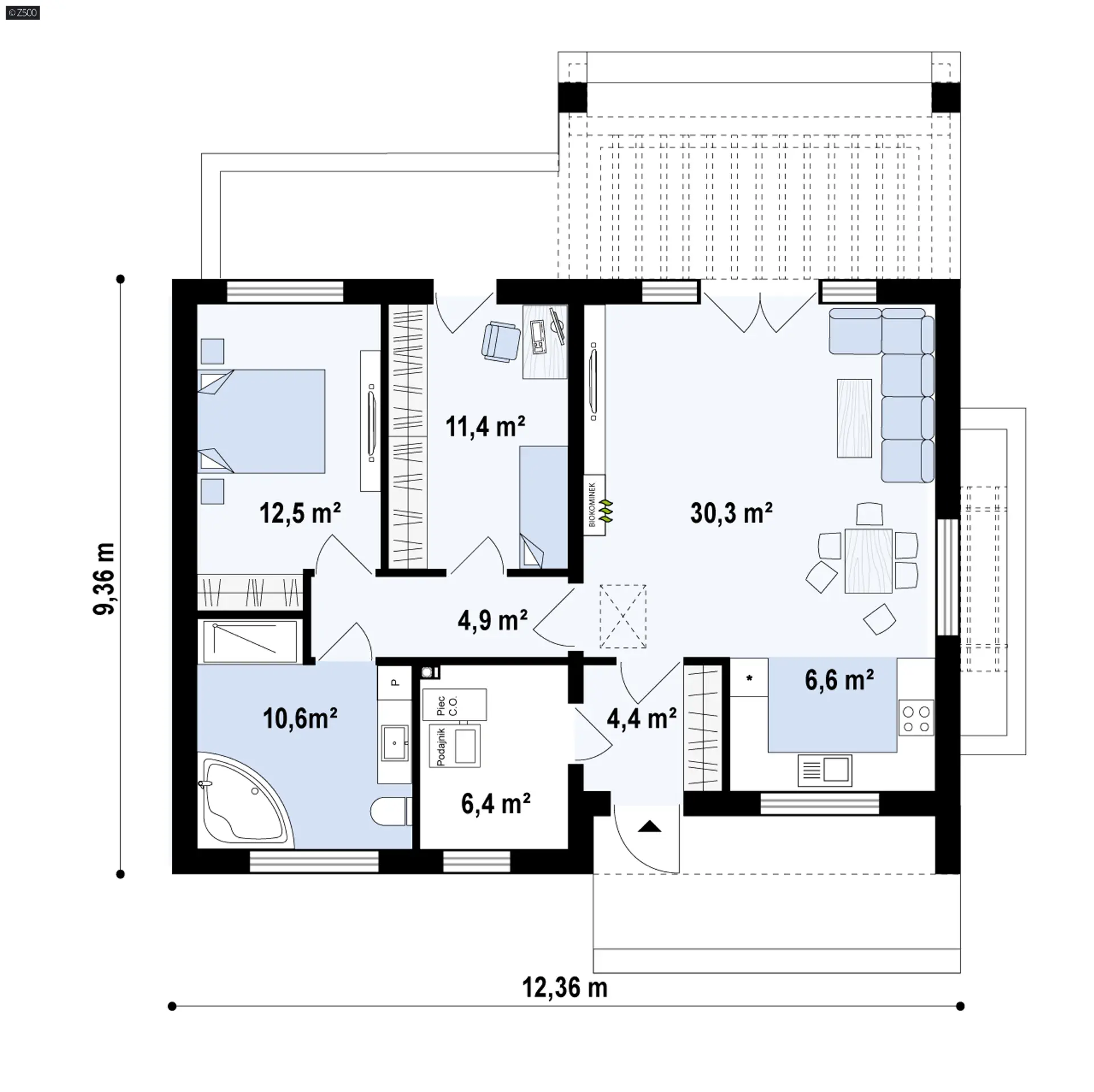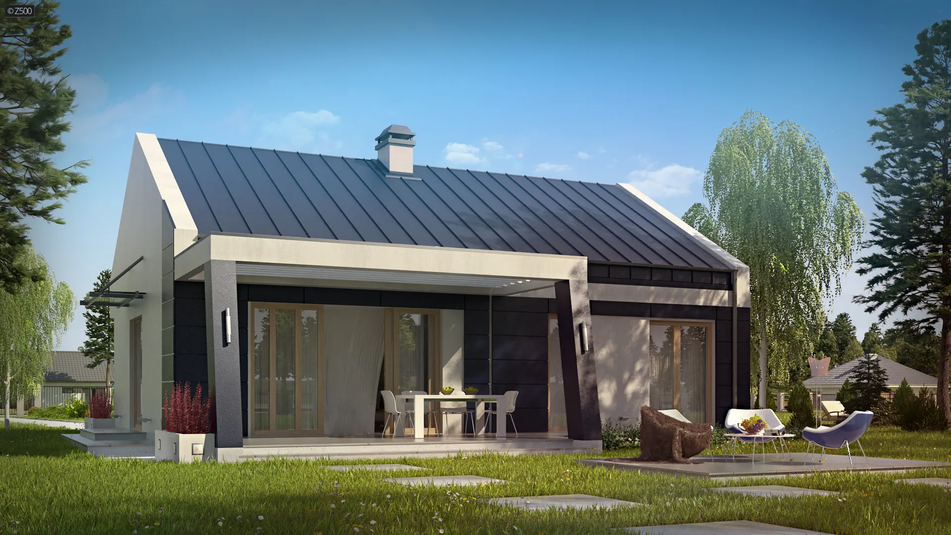 Projekt Z256 to idealna propozycja dla osób poszukujących domu parterowego z bogatym programem funkcjonalnym.