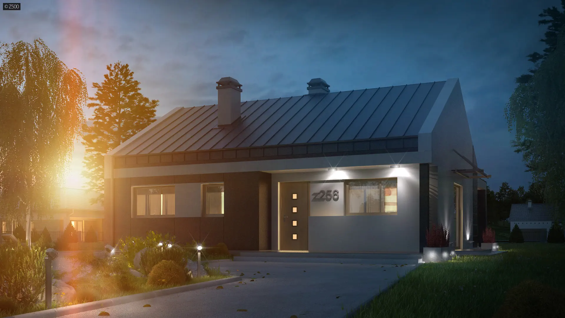 Z256 to projekt domu nowoczesnego. Tworzy go prosta bryła z dwuspoadowym dachem. Oryginalne elementy elewacji i ciekawa kolorystyka nadają mu niezwykłego uroku.