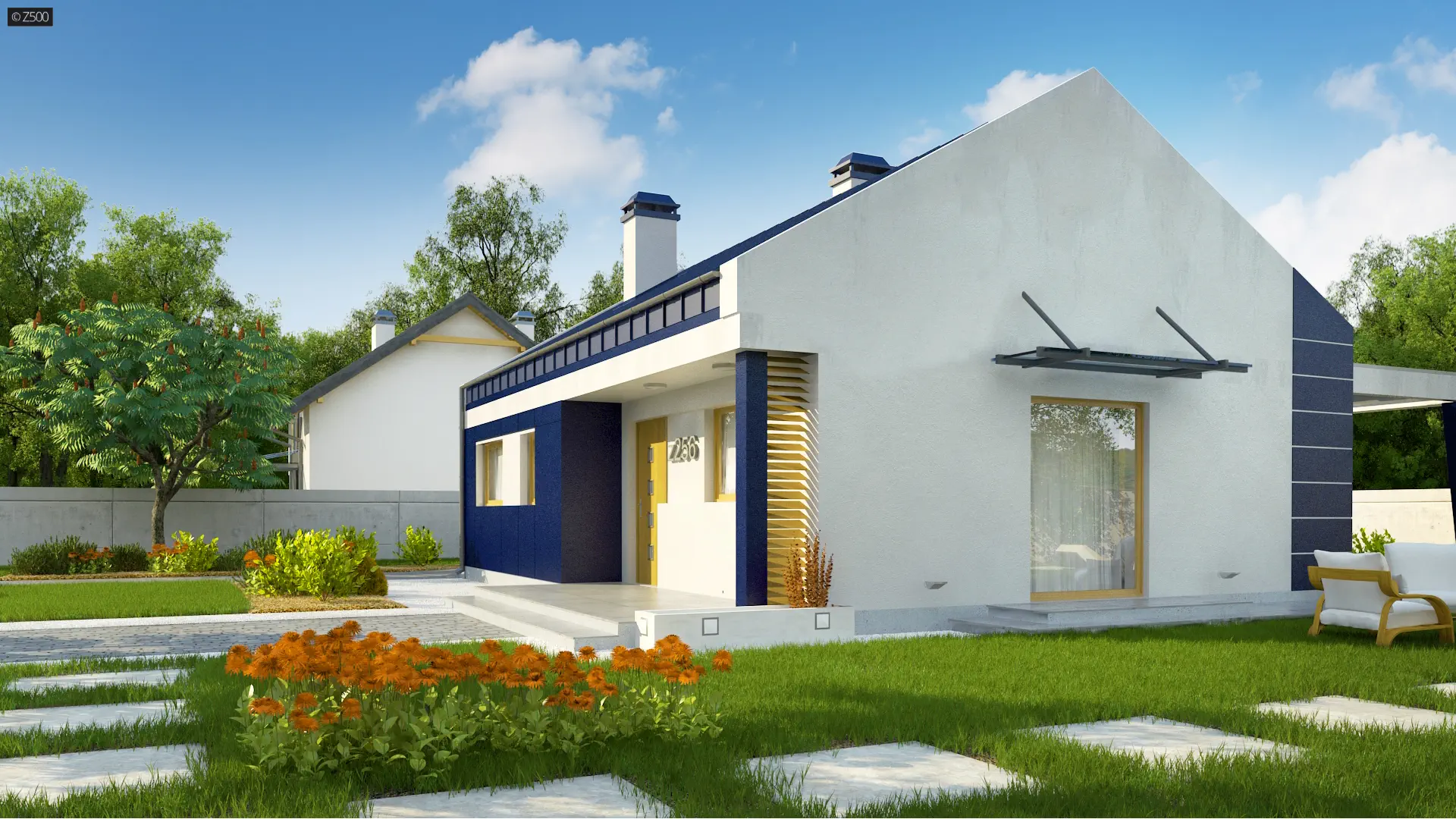 Z256 GL to dom parterowy z garażem po lewej stronie.
