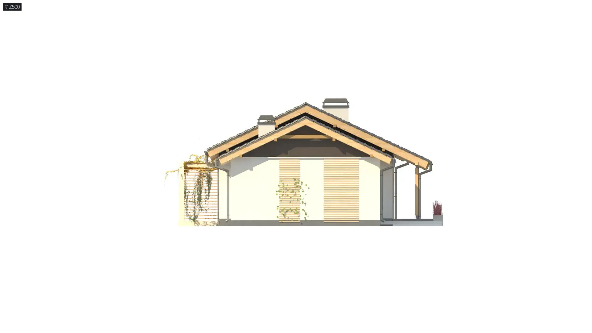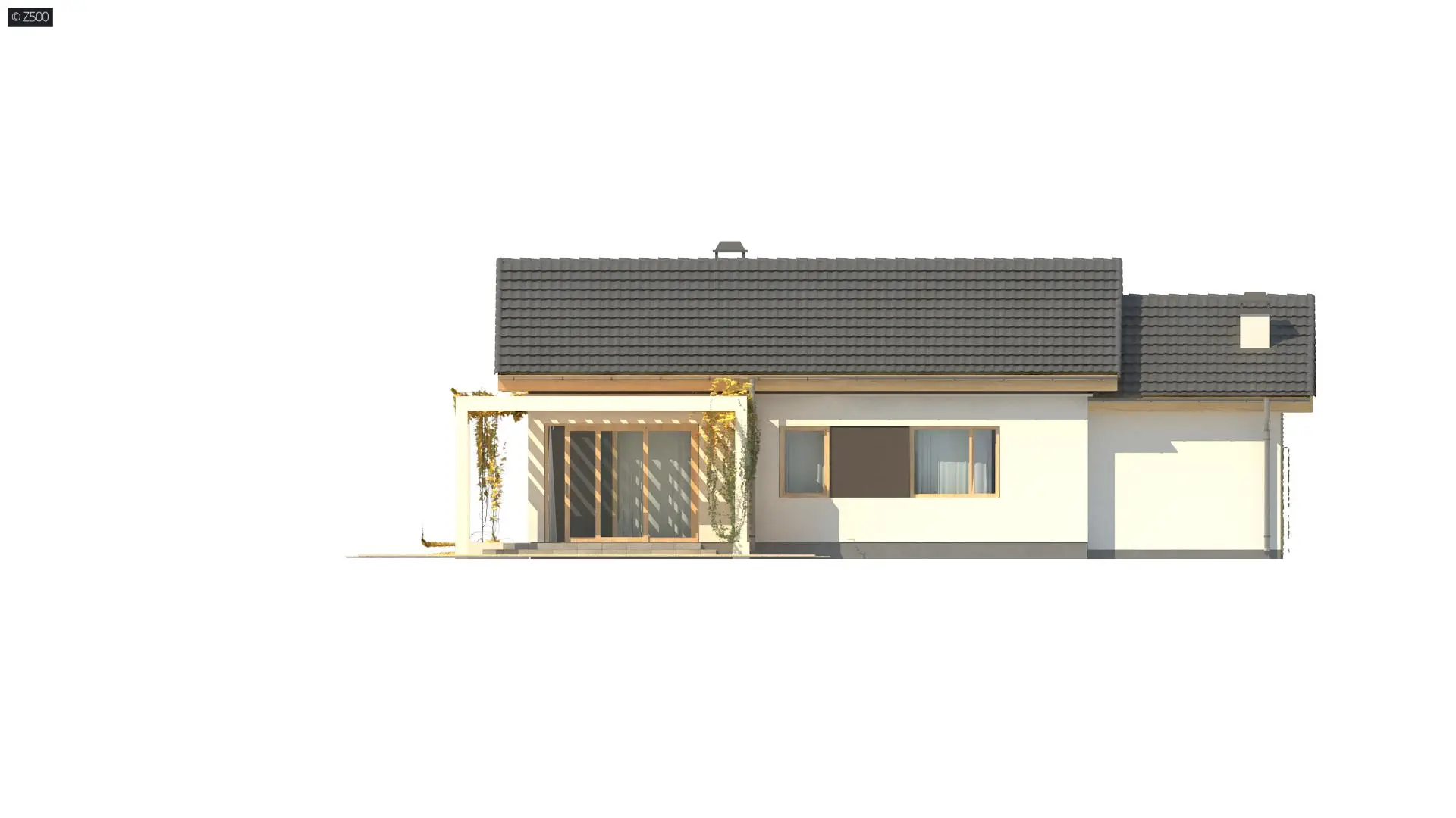 Z259 D to propozycja wspaniałego domu parterowego z dwuspadowym dachem i garażem jednostanowiskowym. Wspaniale wkomponuje się w każdą, nawet niewielką działkę. Jasne barwy ścian doskonale współgrają z drewnianymi elementami elewacji i ciemną antracytową dachówką.