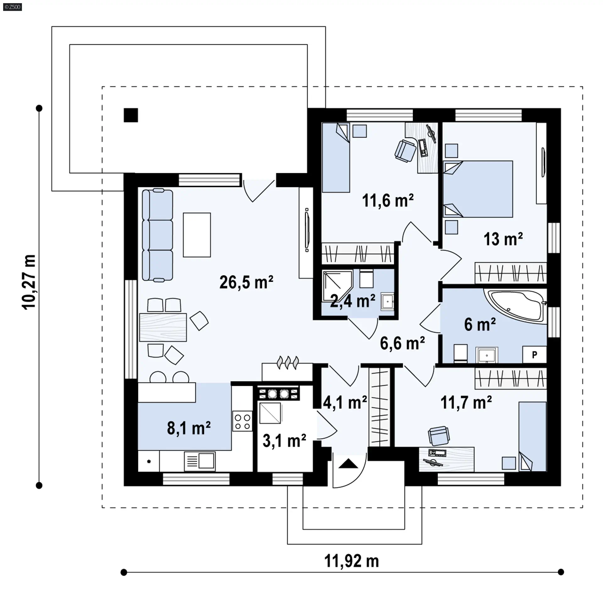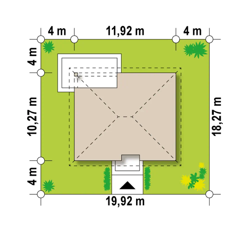 Z273 to kompaktowy dom parterowy o prostej bryle przekrytej dachem kopertowym.
