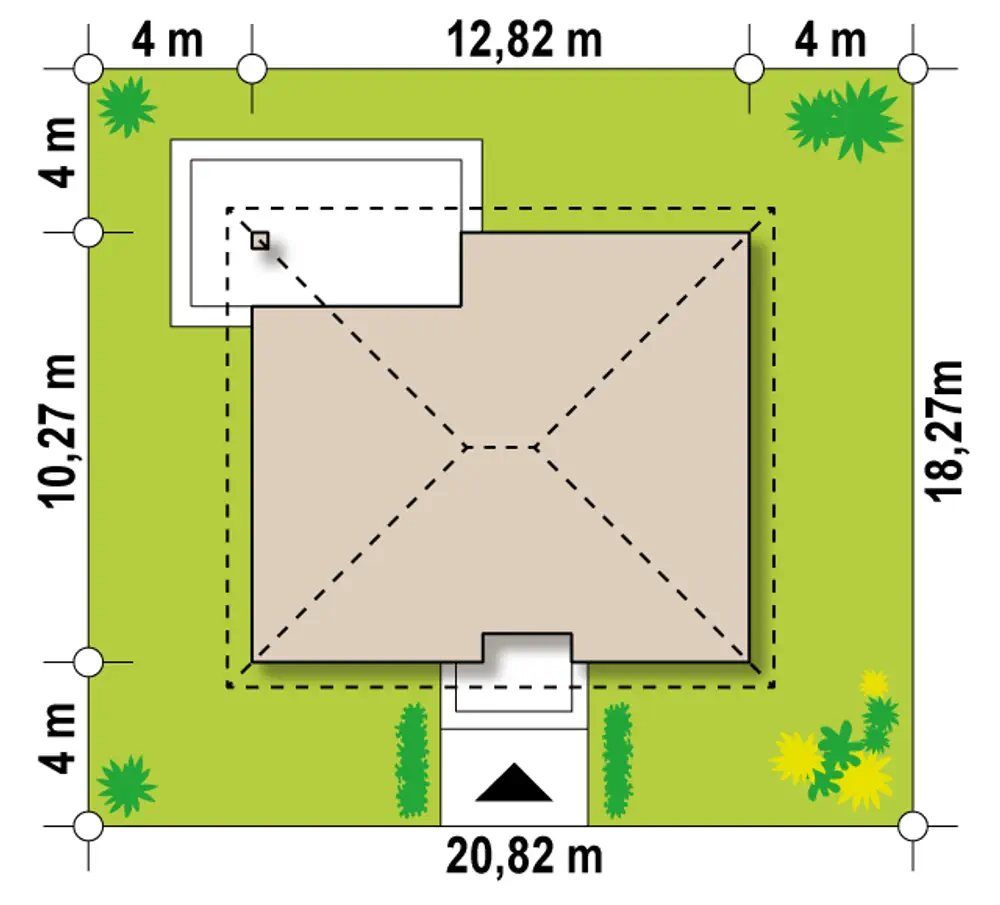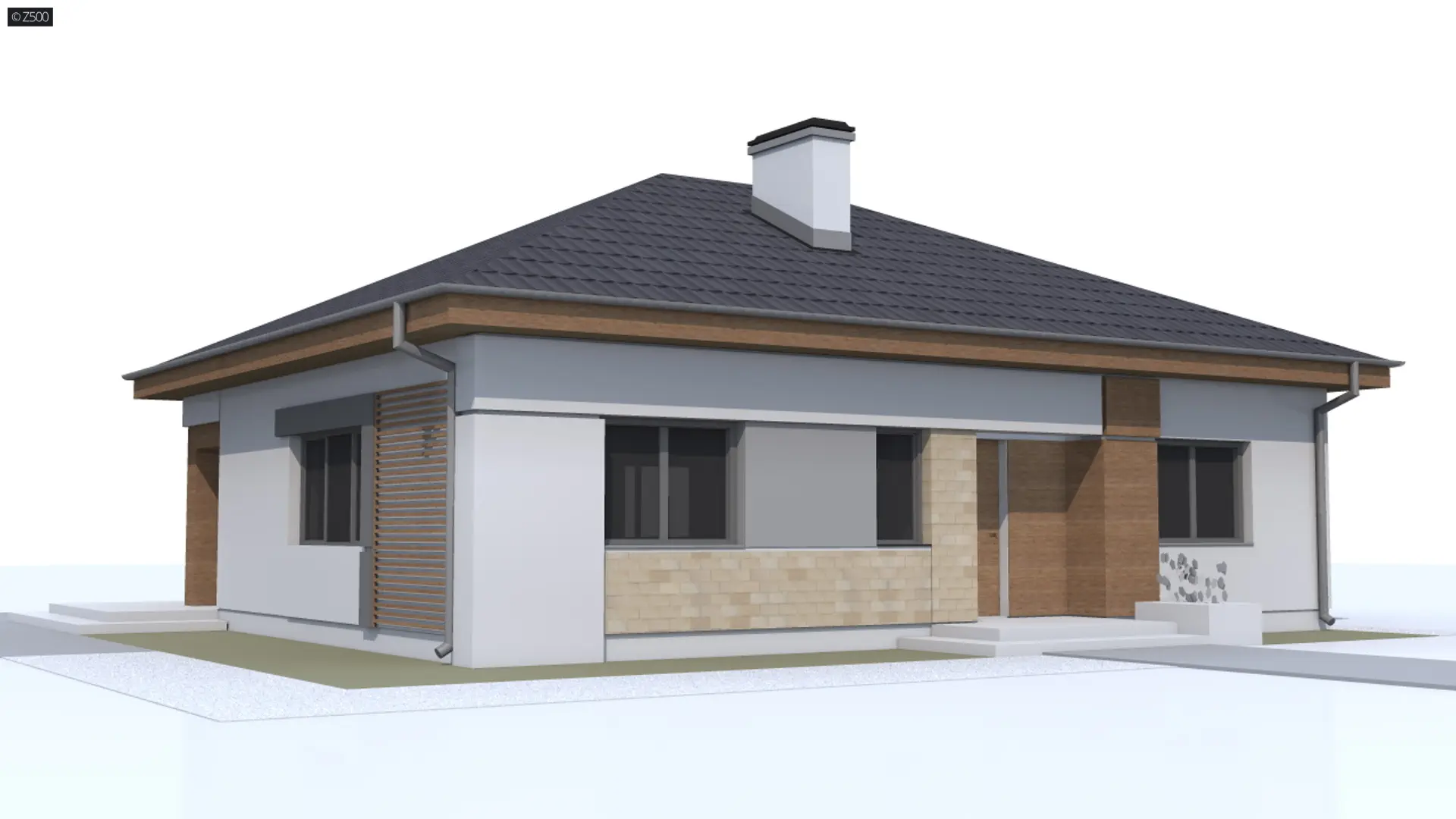 Z273 to kompaktowy dom parterowy o prostej bryle przekrytej dachem kopertowym.
