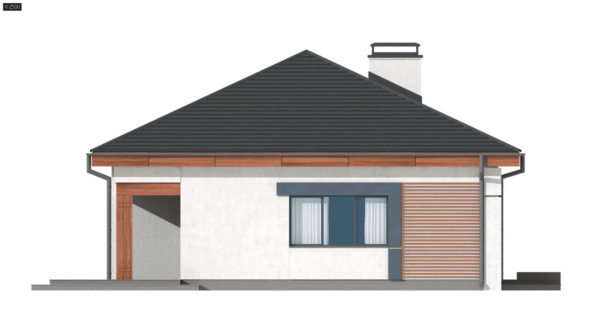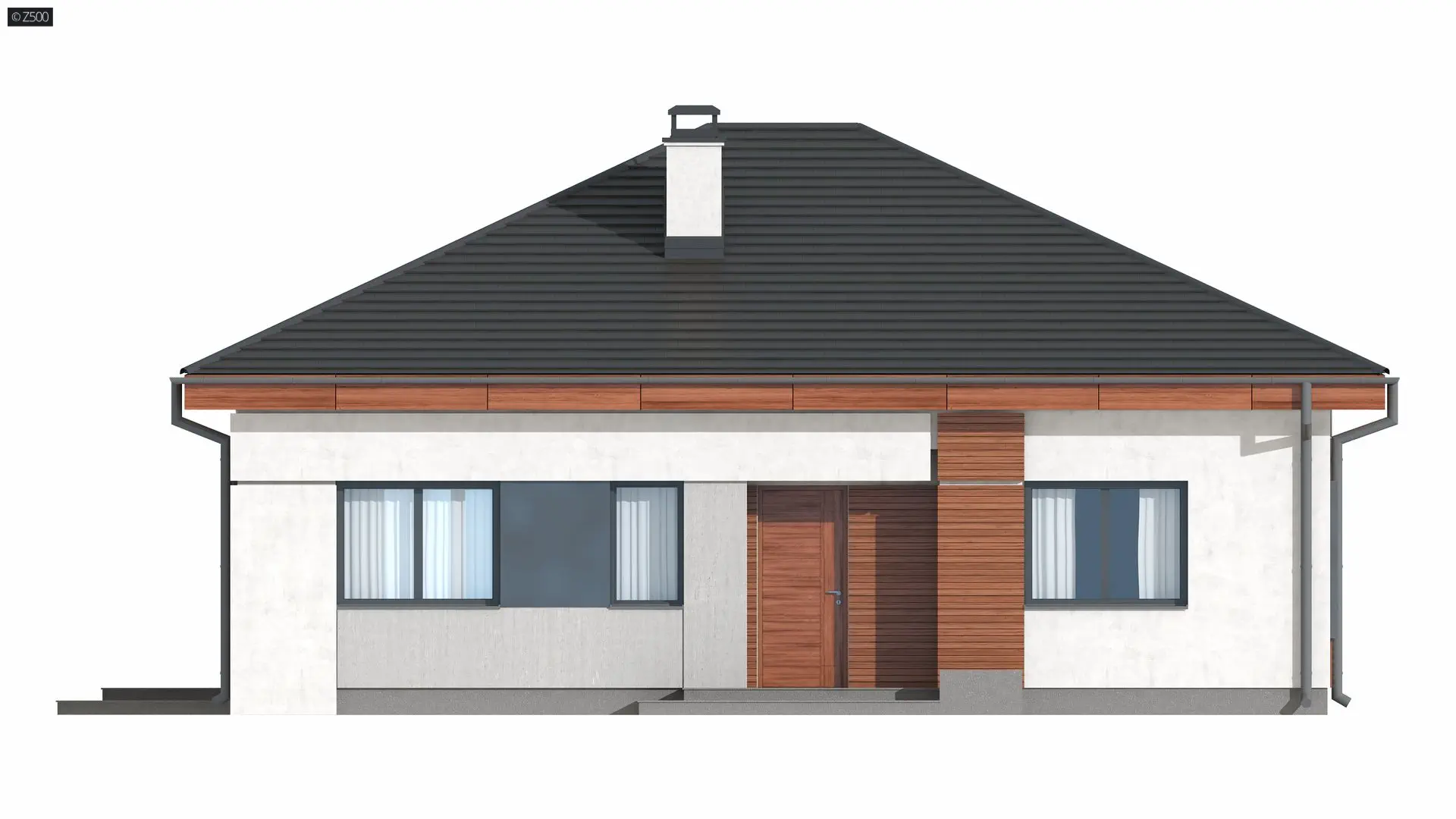 Z273 pc to kompaktowy dom z ogrzewaniem pompą ciepła, przekryty dachem kopertowym.
