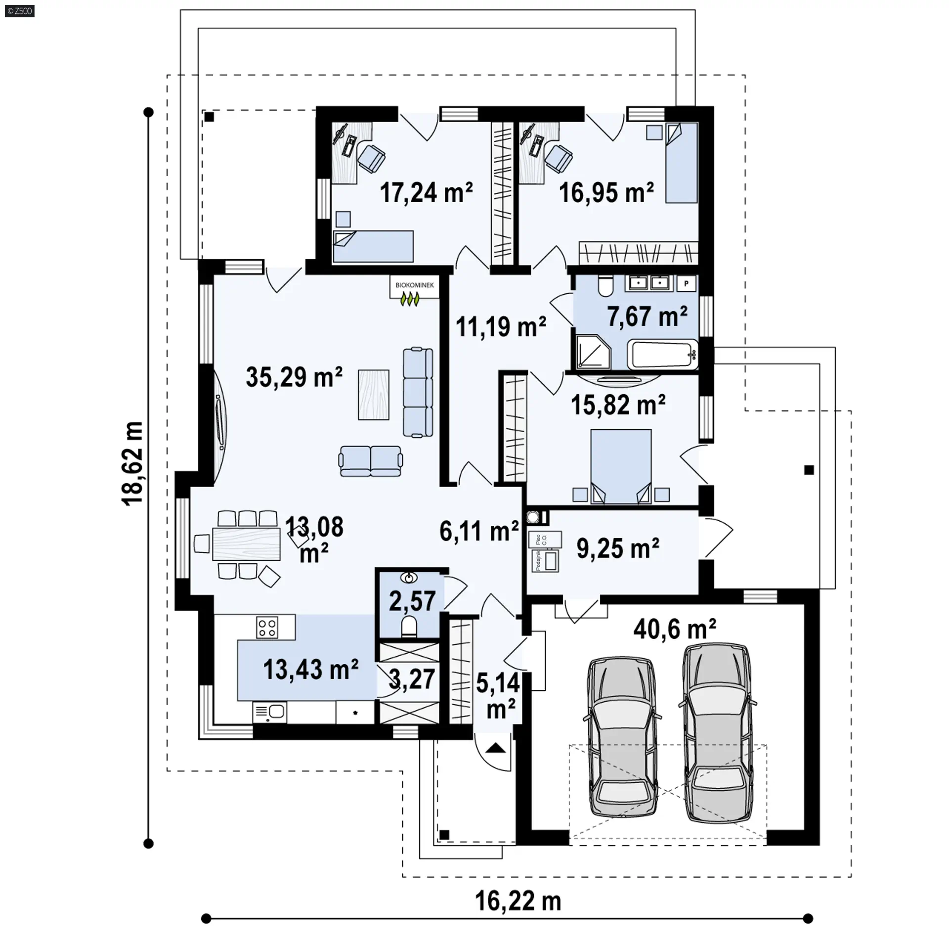 Projekt Z281 D to wspaniała propozycja domu na lata. Jego parterowe położenie i funkcjonalny układ zadowoli zarówno młode jak i starsze pokolenie.