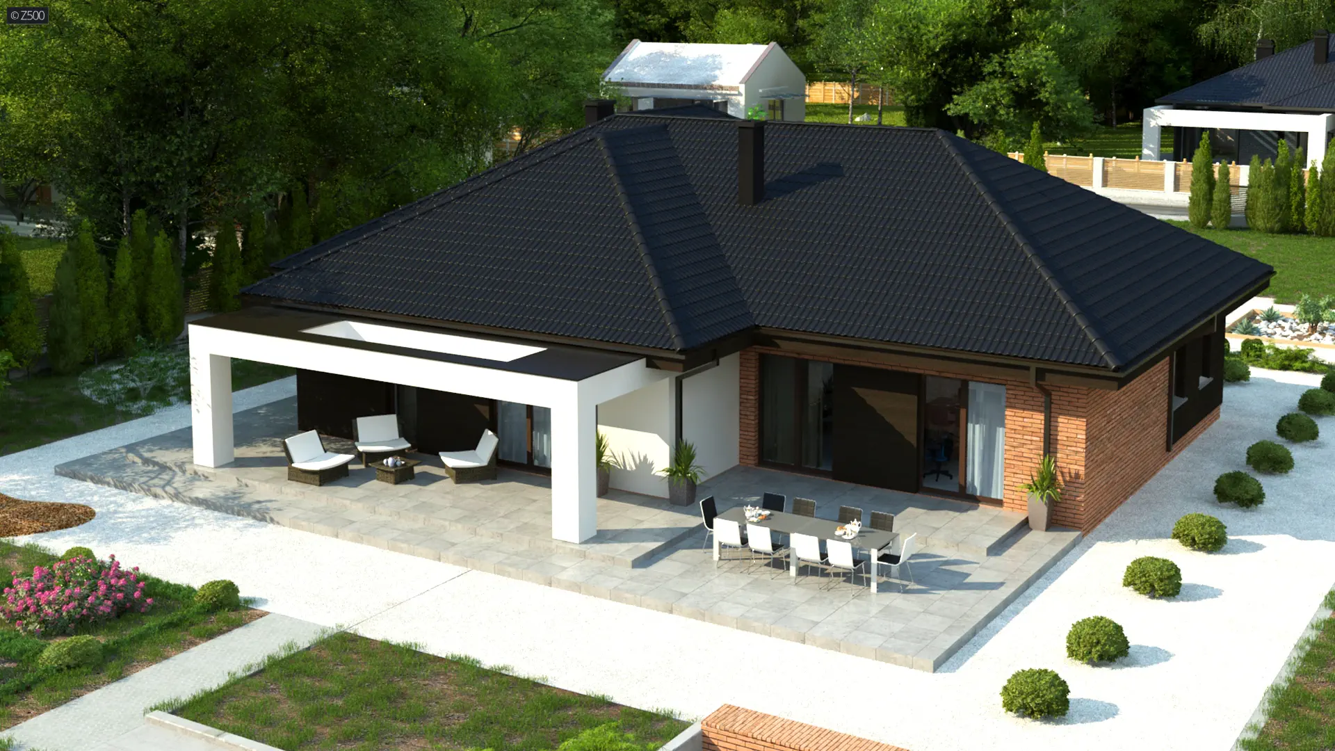 Z282 to propozycja współczesnego, parterowego domu jednorodzinnego z dachem wielospadowym, który składa się z 3 nakładających się na siebie brył. Dwie powierzchnie elewacyjne wykończono płytami elewacyjnymi drewnopodobnym, pozostałe to biały tynk.