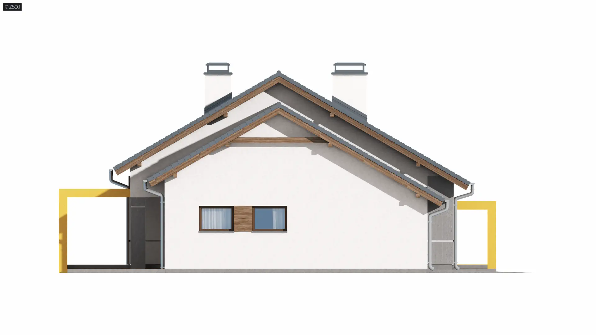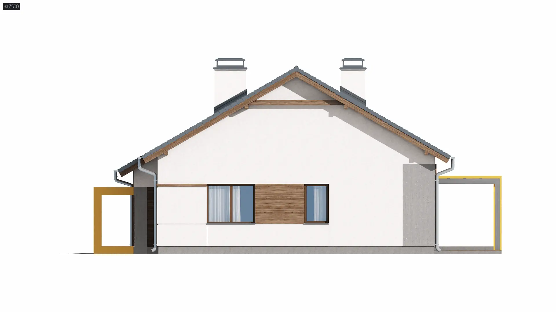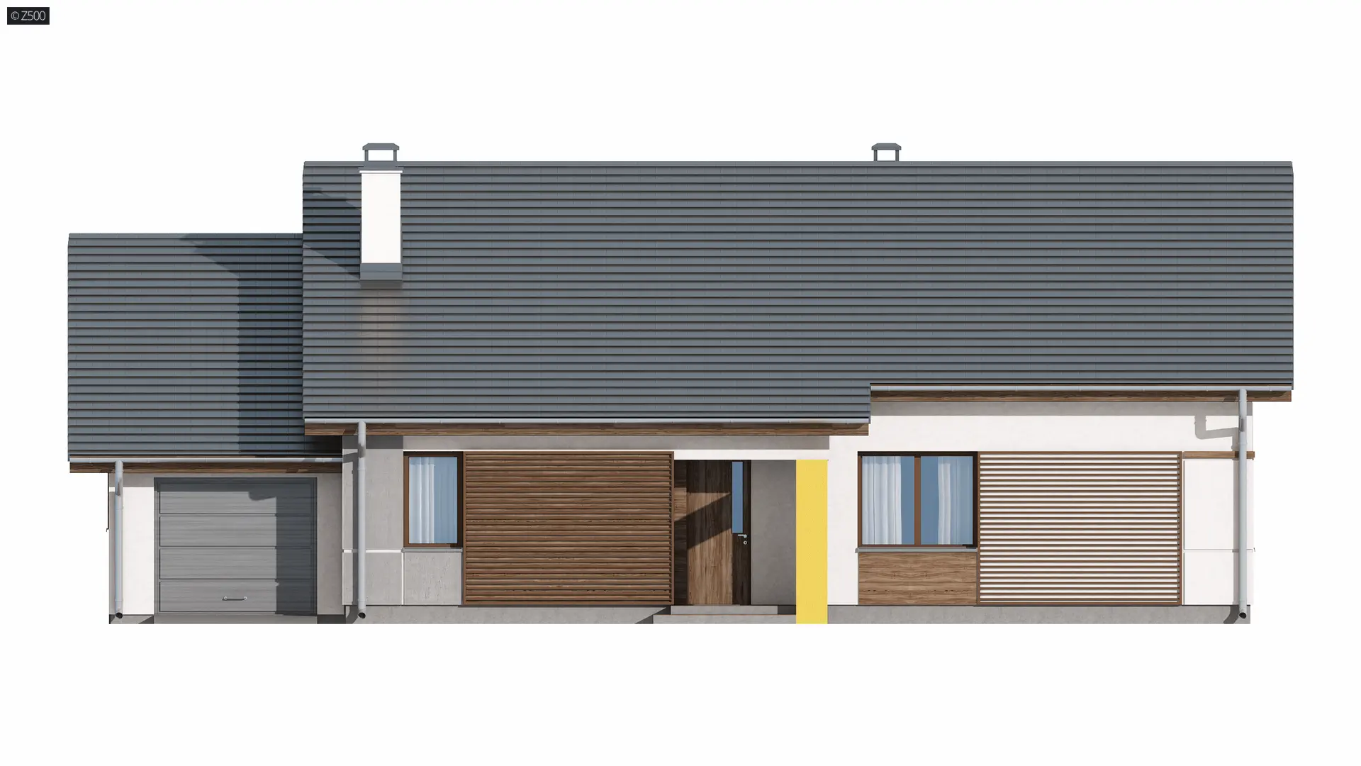 Z287 to zgrabny parterowy dom z garażem jednostanowiskowym i dużą kotłownia na paliwo stałe. Brak wewnętrznych ścian konstrukcyjnych daje wiele możliwości aranżacji i dopasowania wnętrza do indywidualnych potrzeb.