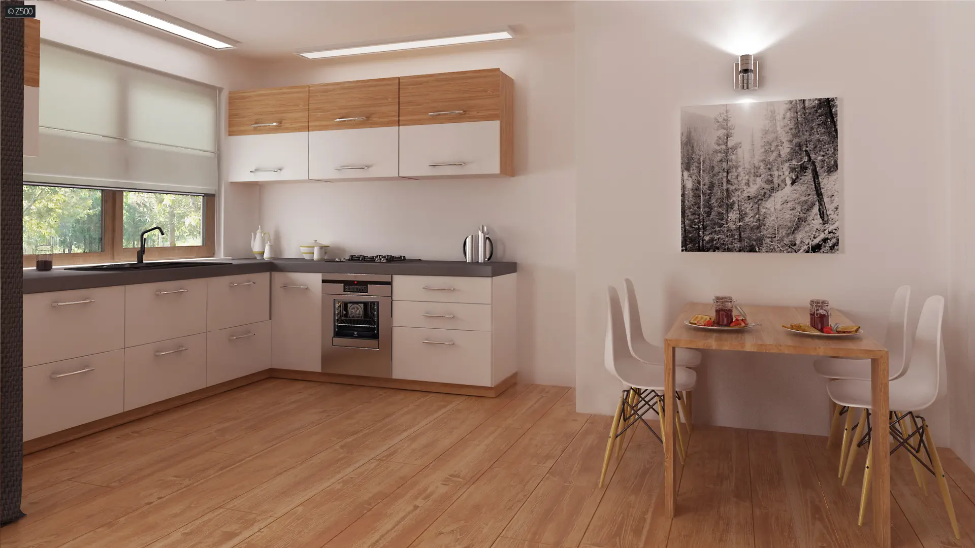 Zgrabny dom parterowy z kotłownią na paliwo stałe i kuchnią od strony ogrodu.