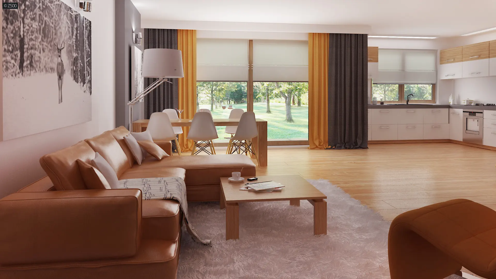 Część reprezentacyjna to przestronny salon z otwarta kuchnią z widokiem na ogród i wyjściem na zadaszony taras. Przenosząc kotłownię do pomieszczenia za garażem można zyskać dodatkową powierzchnię i powiększyć salon, przenieść tu kuchnię czy wygospodarować gabinet. W dalszej części domu znajduje się strefa nocna i trzy sypialnie. Do dyspozycji domowników są również dwie łazienki - jedna z natryskiem, większa z wanną.