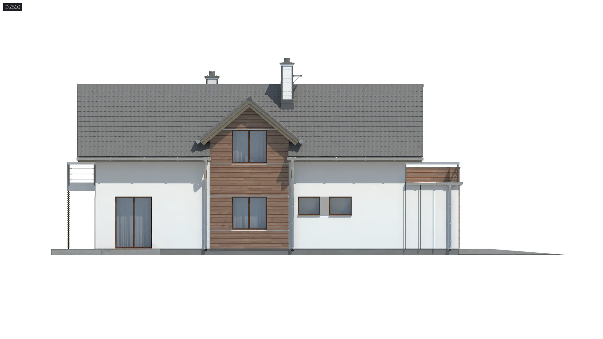 Z293 to prosty w formie dom z dachem dwuspadowym. Budynek urozmaica zgrabna lukarna oraz wysunięta przed front bryła garażu. Uroku dodają mu nowoczesne elementy wykończenia elewacji.
