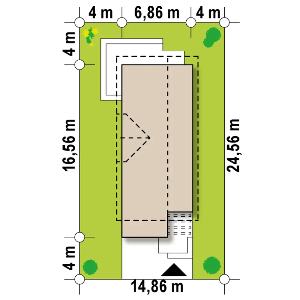 Z293 to dom z garażem jednostanowiskowym. Niewielka szerokość frontu oraz brak okien na bocznej elewacji powodują, że jest to projekt idealny na bardzo wąską działkę.