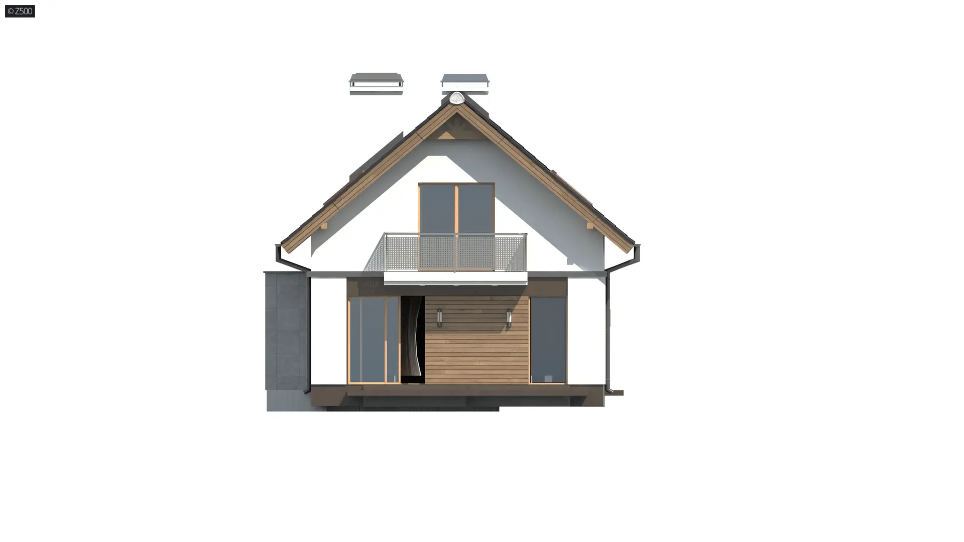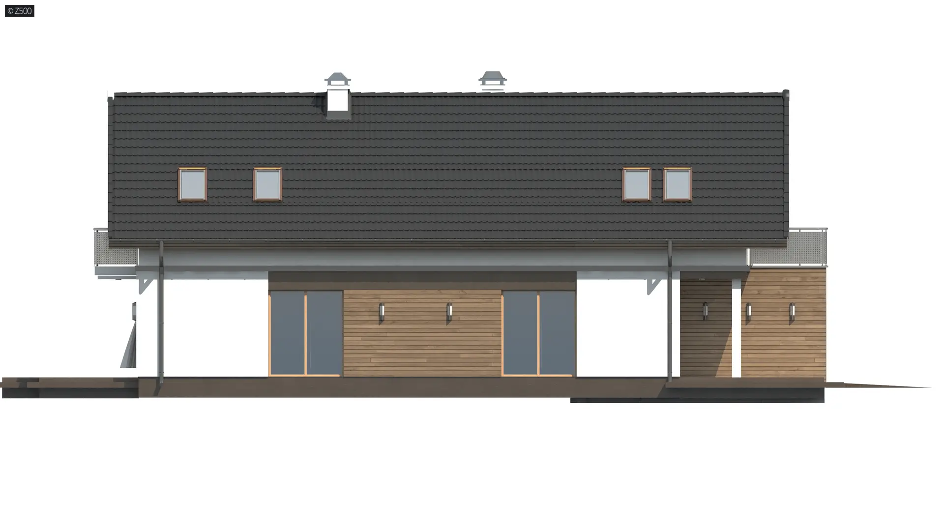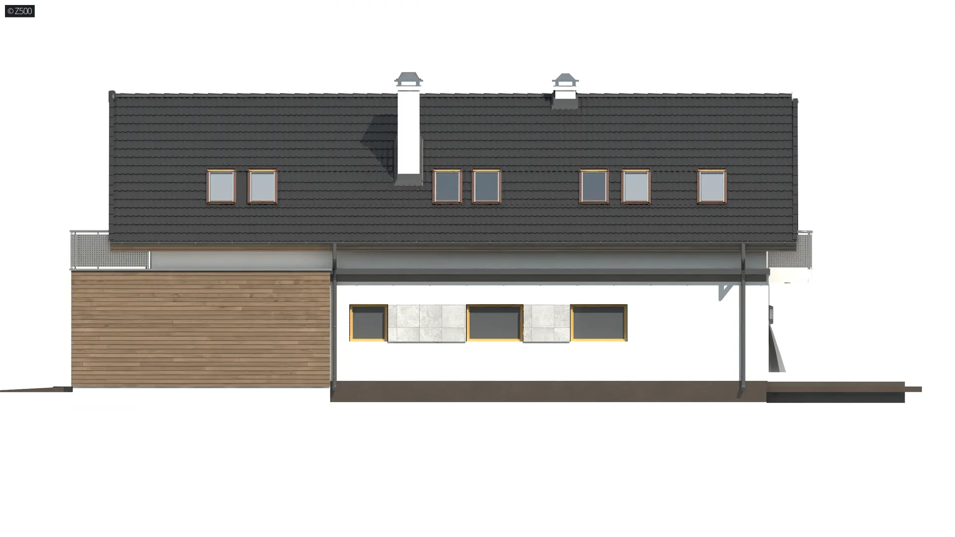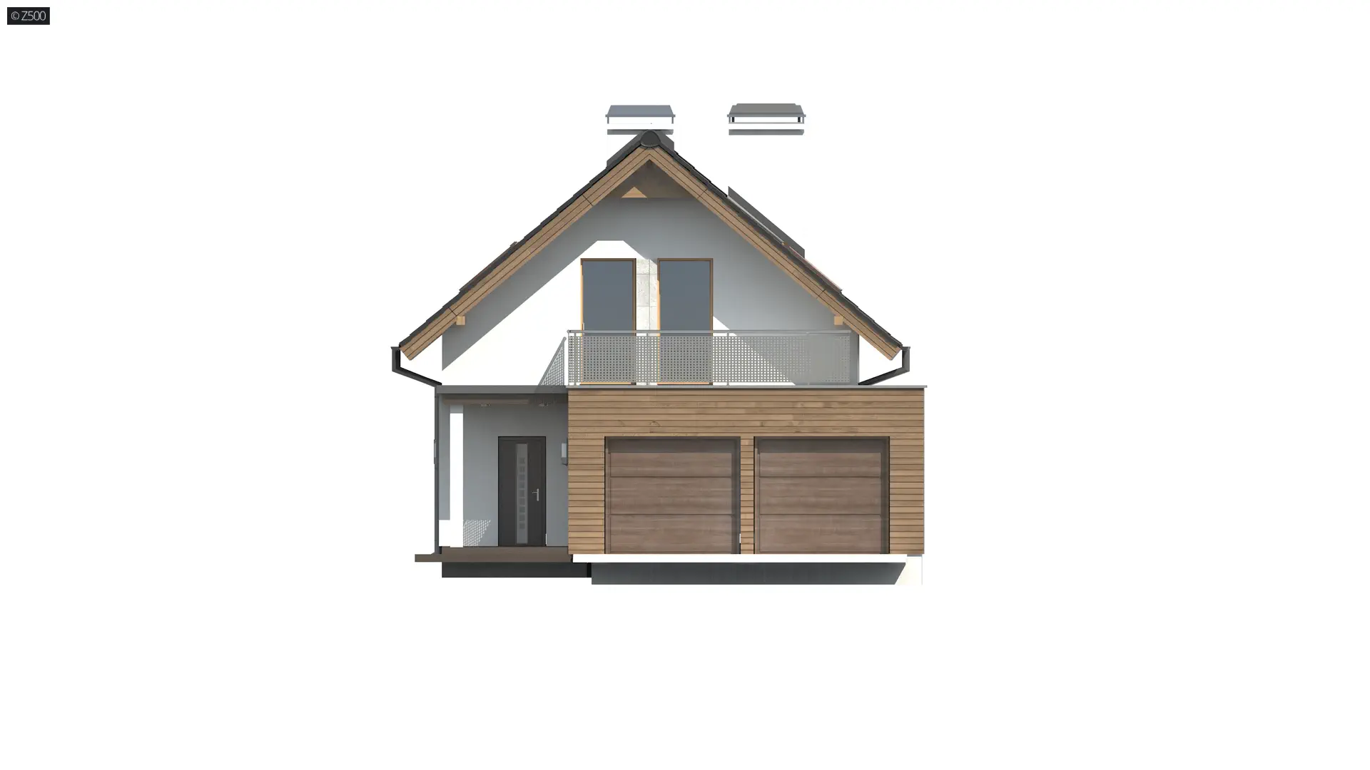 Z294 to funkcjonalny dom z garażem dwustanowiskowym i użytkowym poddaszem. Prostą bryłę urozmaicają ciekawe podziały elewacji i wysunięty garaż.