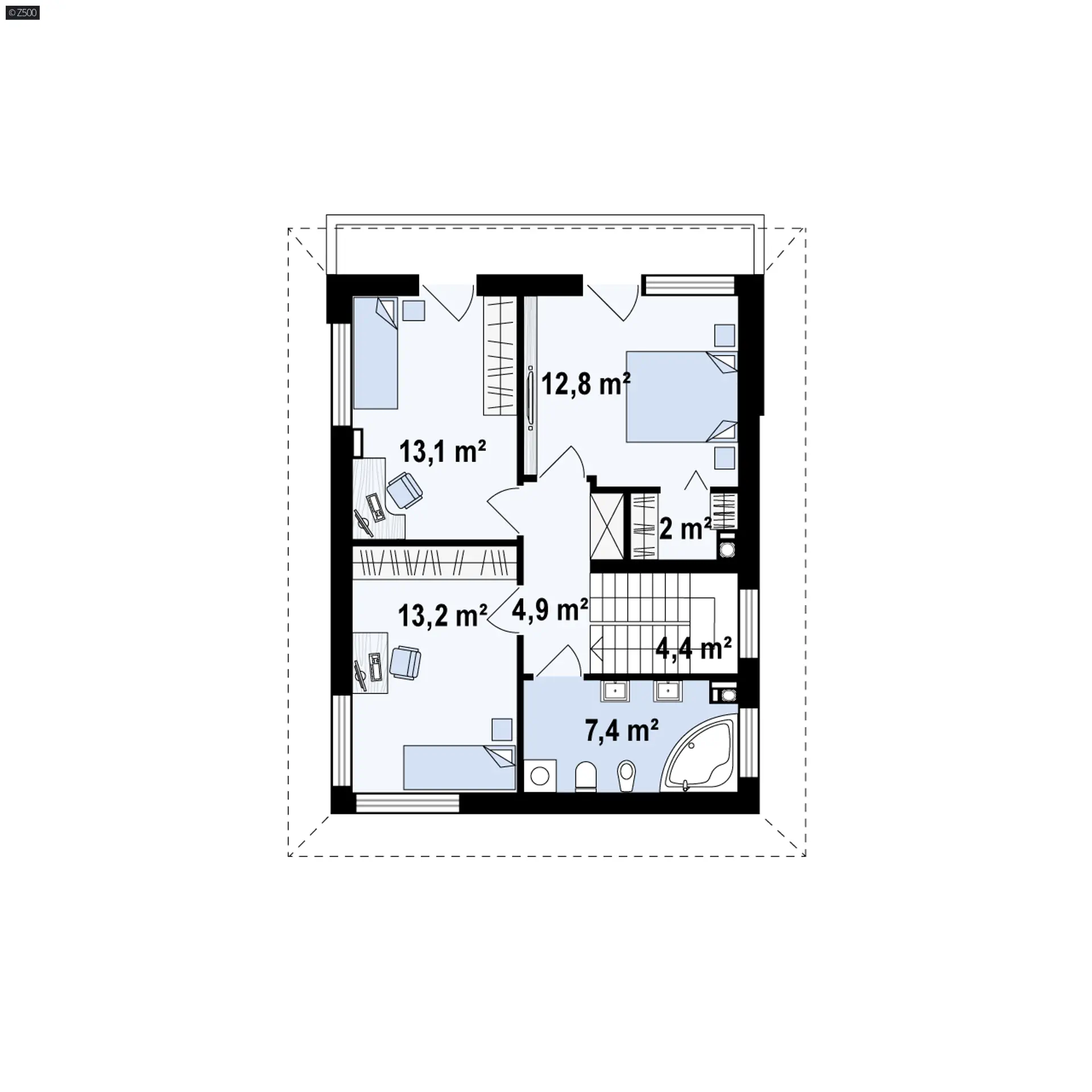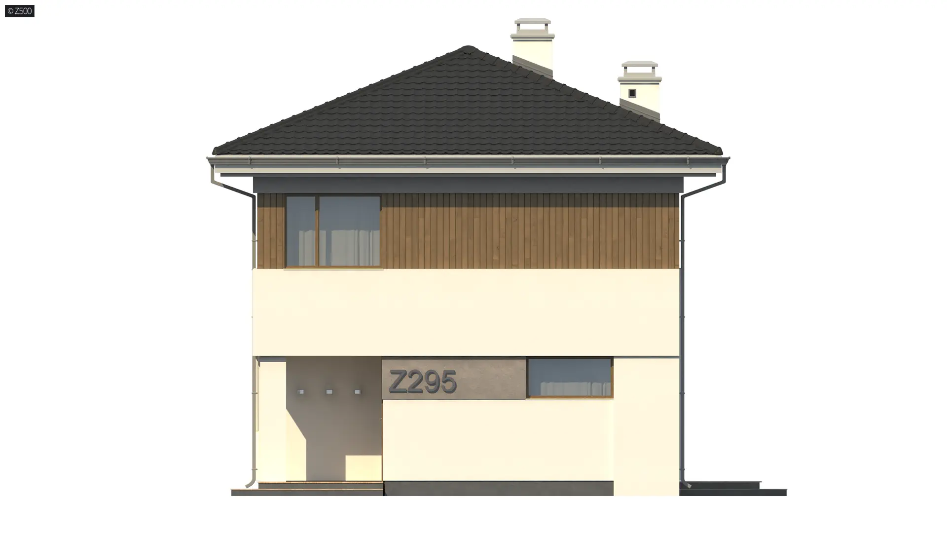 Z295 to zgrabny dom piętrowy o nowoczesnym wyglądzie z dachem kopertowym. Na niedużej powierzchni użytkowej zaprojektowano wygodne i funkcjonalne wnętrze dla 4 osobowej rodziny.
